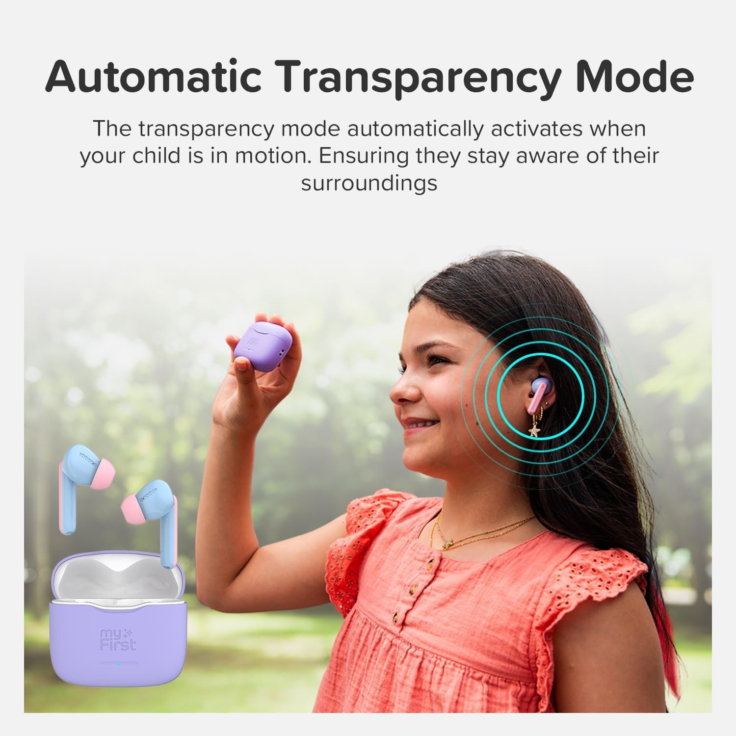 EASY AUTO PAIRING & KID-FRIENDLY CONTROLS: Say goodbye to setup struggles! The myFirst CareBuds feature quick, seamless True Wireless Bluetooth pairing, letting your little ones connect instantly. With easy-to-use touch controls, kids can switch between music, calls, and volume effortlessly. And with the built-in mic, they’ll enjoy crisp, clear calls every time.