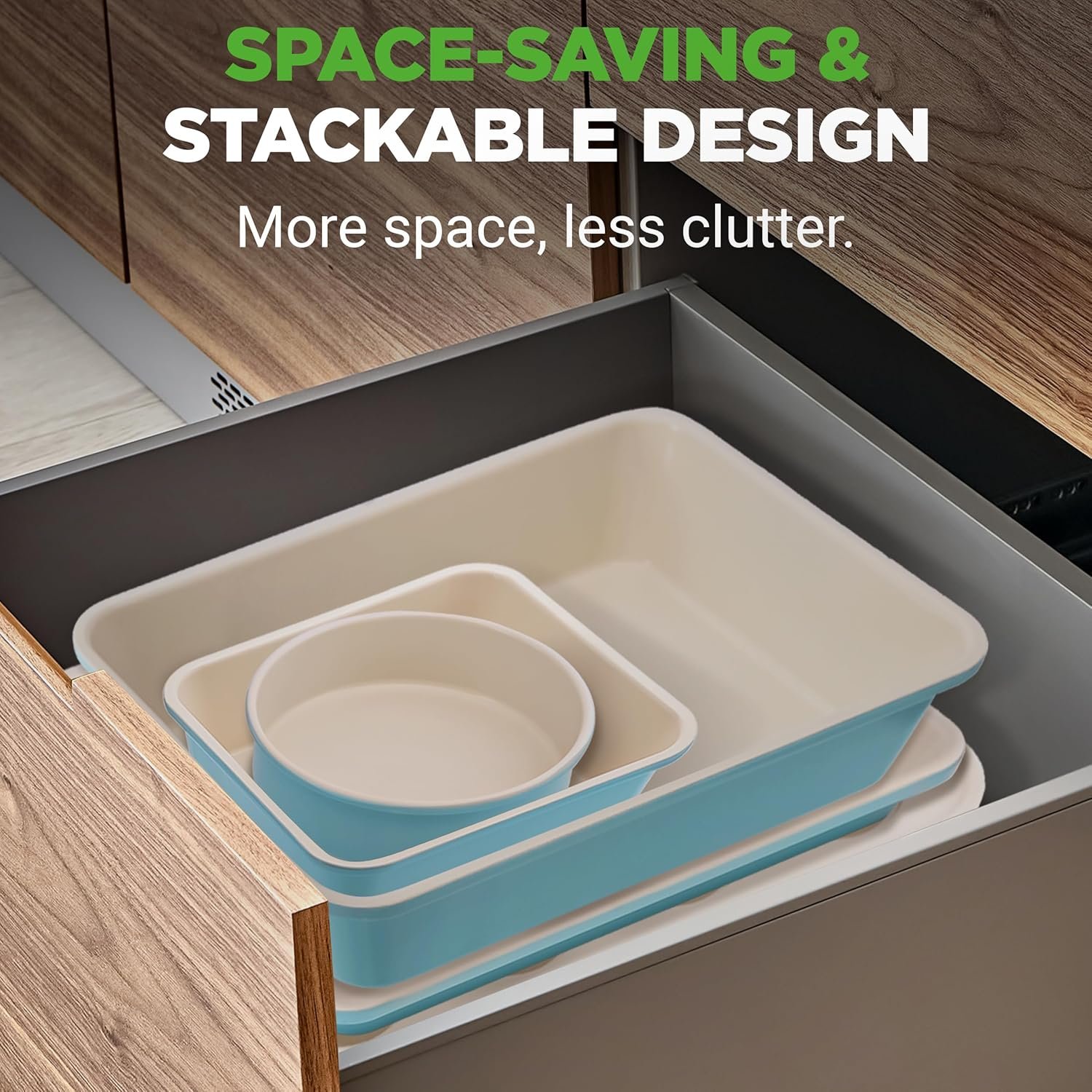 Bring color and convenience to your kitchen with this 6-piece carbon steel bakeware set featuring a premium ceramic nonstick coating. Perfect for everyday baking, from cookies to cakes!