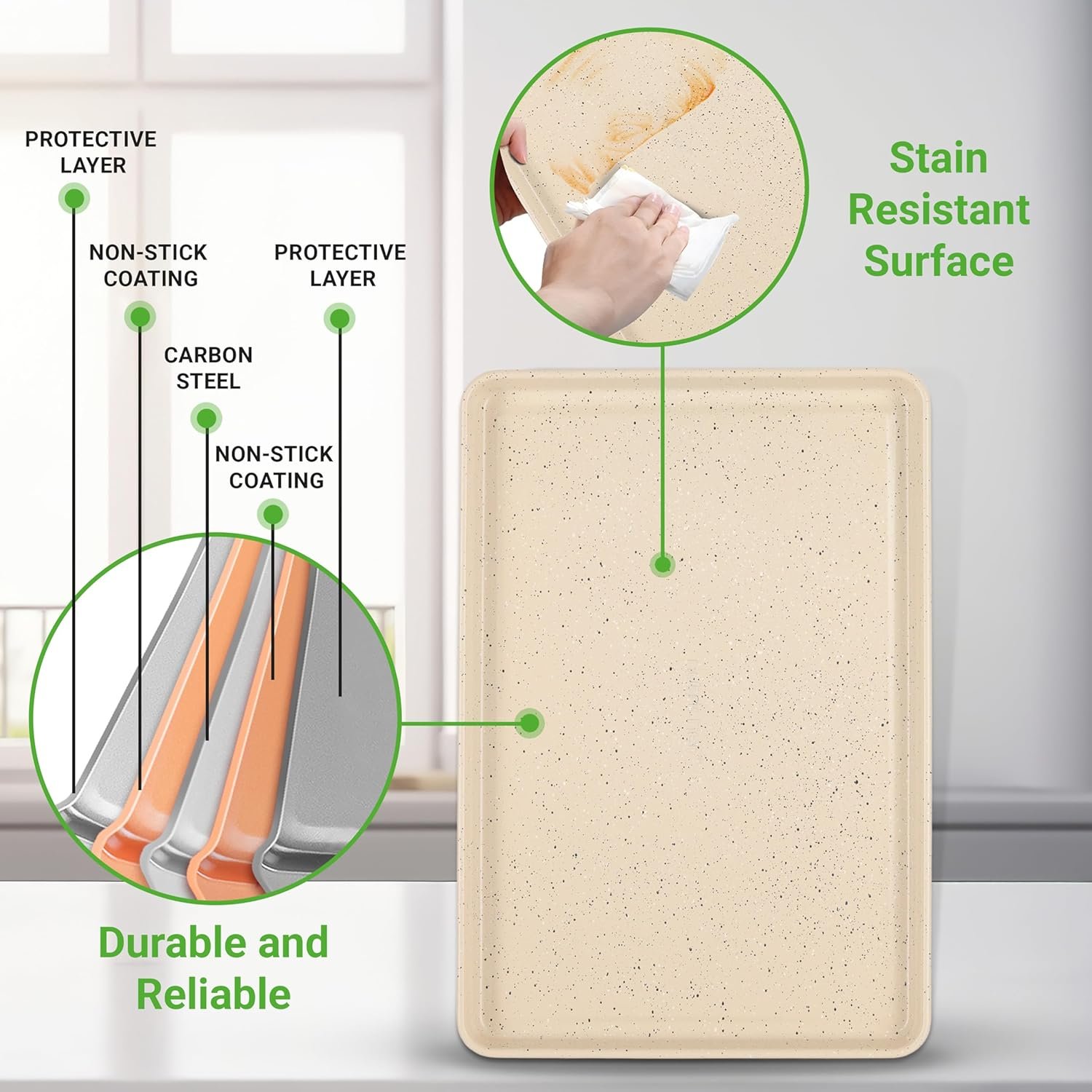 LONG-LASTING NON-STICK COATING – The carbon steel pans have a reliable non-stick surface, making your baking mess-free and healthier by reducing the need for excess oil. This stain-resistant set is suitable for busy bakers looking for fast results.