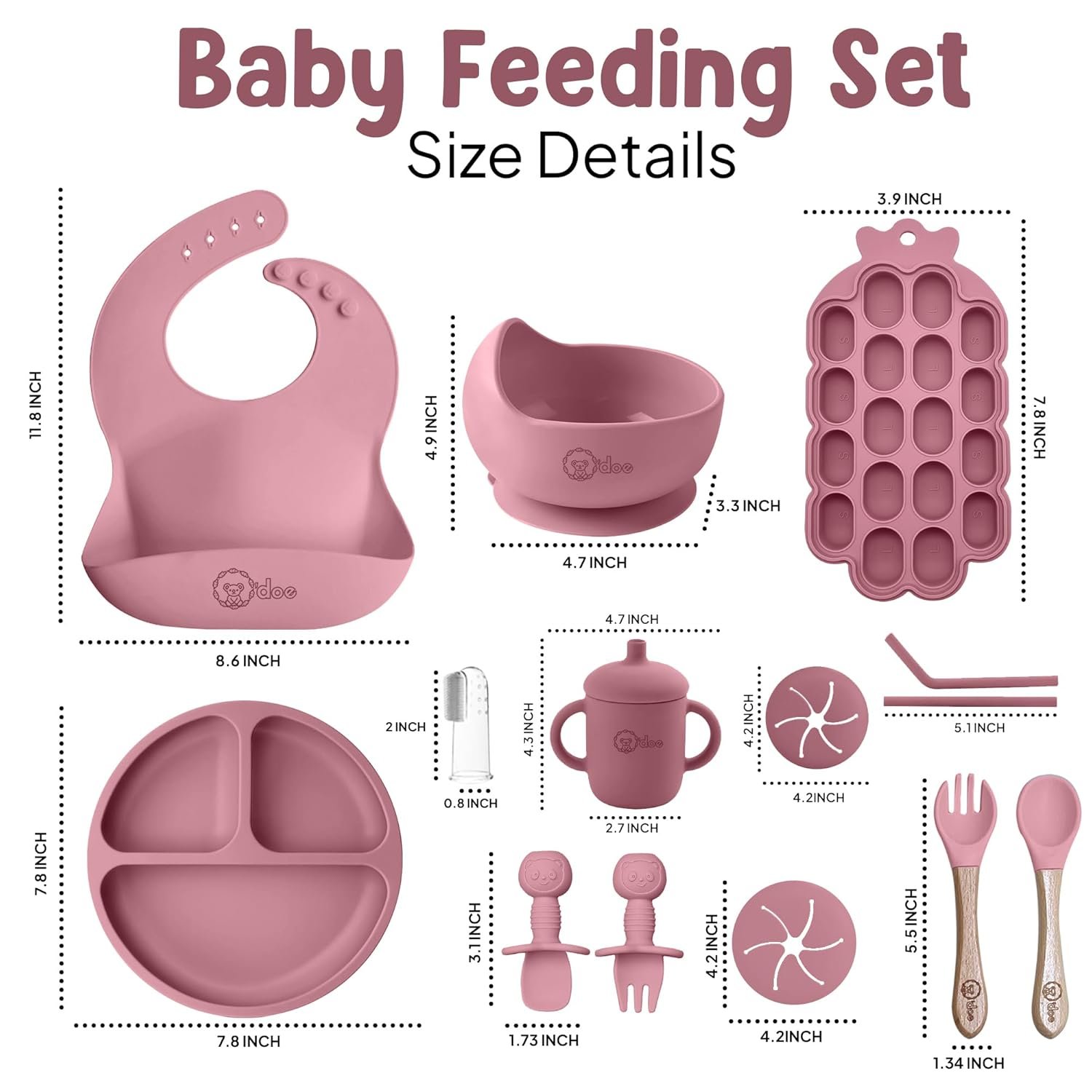 O’doe Baby Weaning Set – 15 Pcs Silicone Baby Feeding Set with Suction Plate, Bowl, Bib, Sippy Cup, Fruit Feeder, Freezer Tray