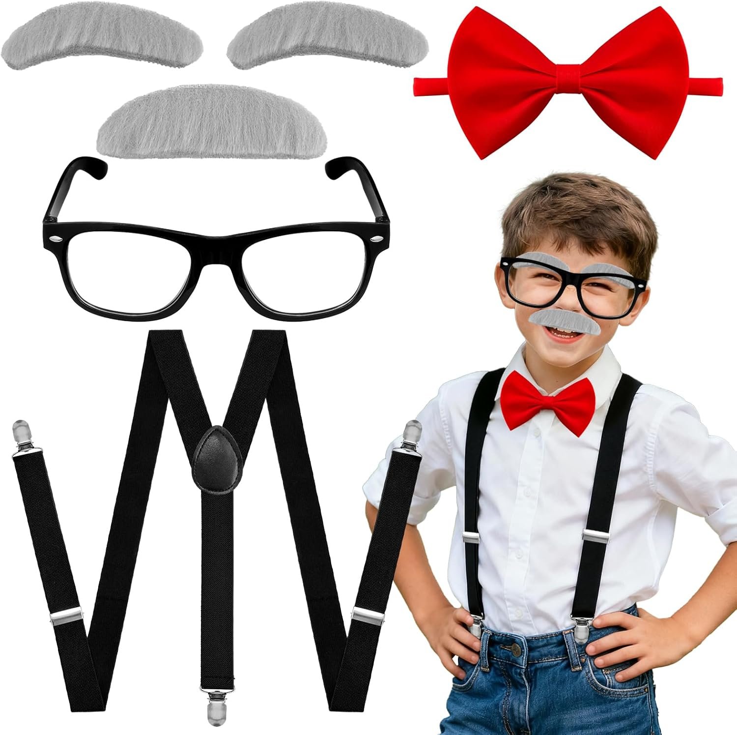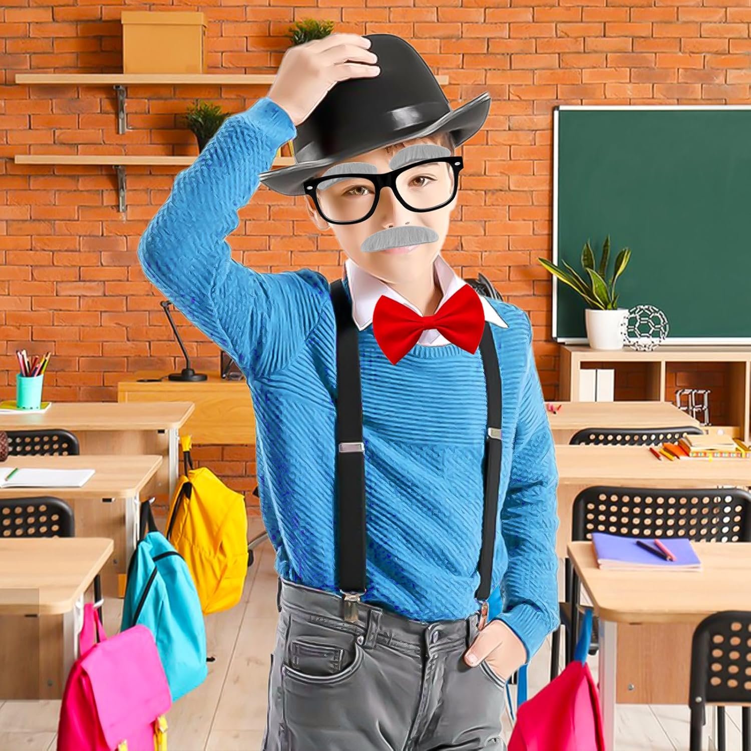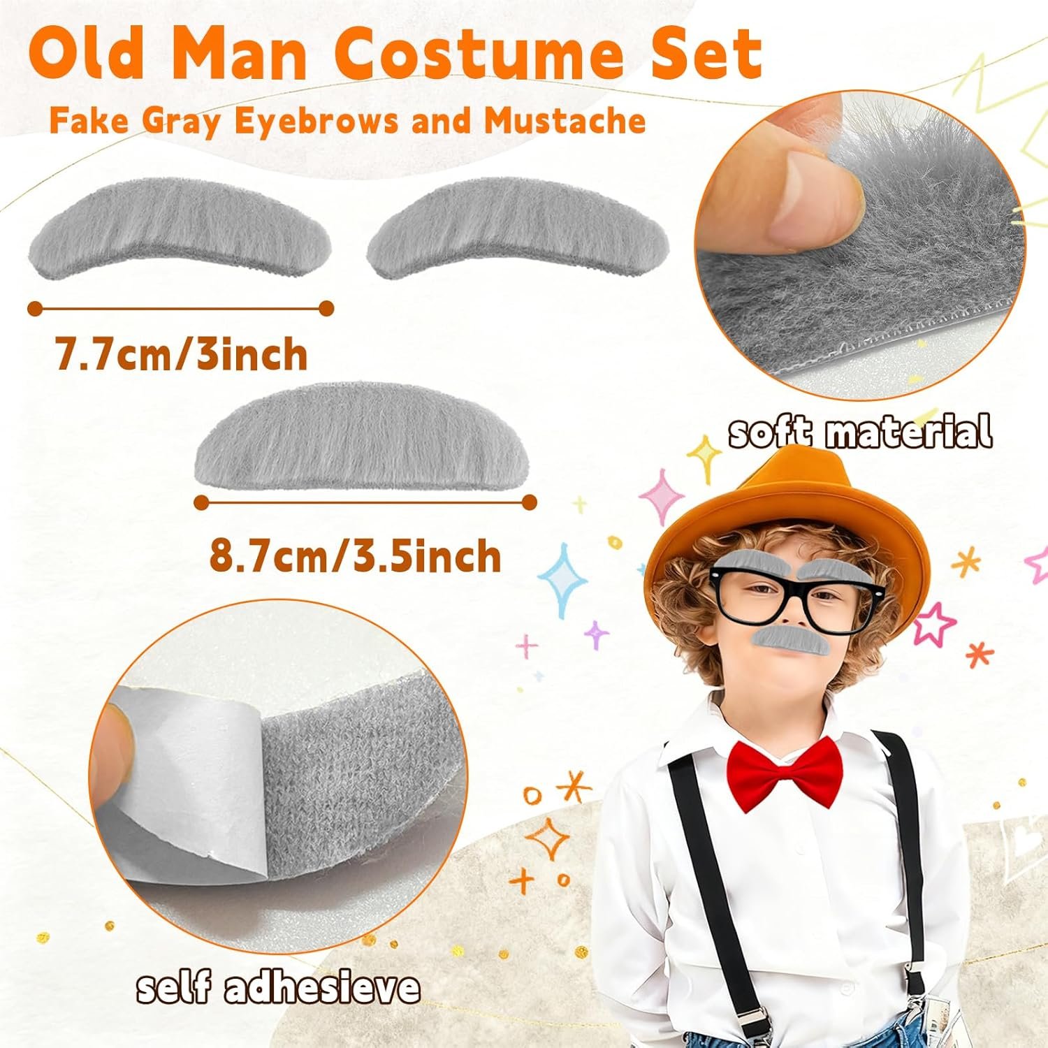 Old Man Costume Accessories for Kid,100 Days of School Grandpa Mad Scientist Wig Set Crazy Physicist Cosplay