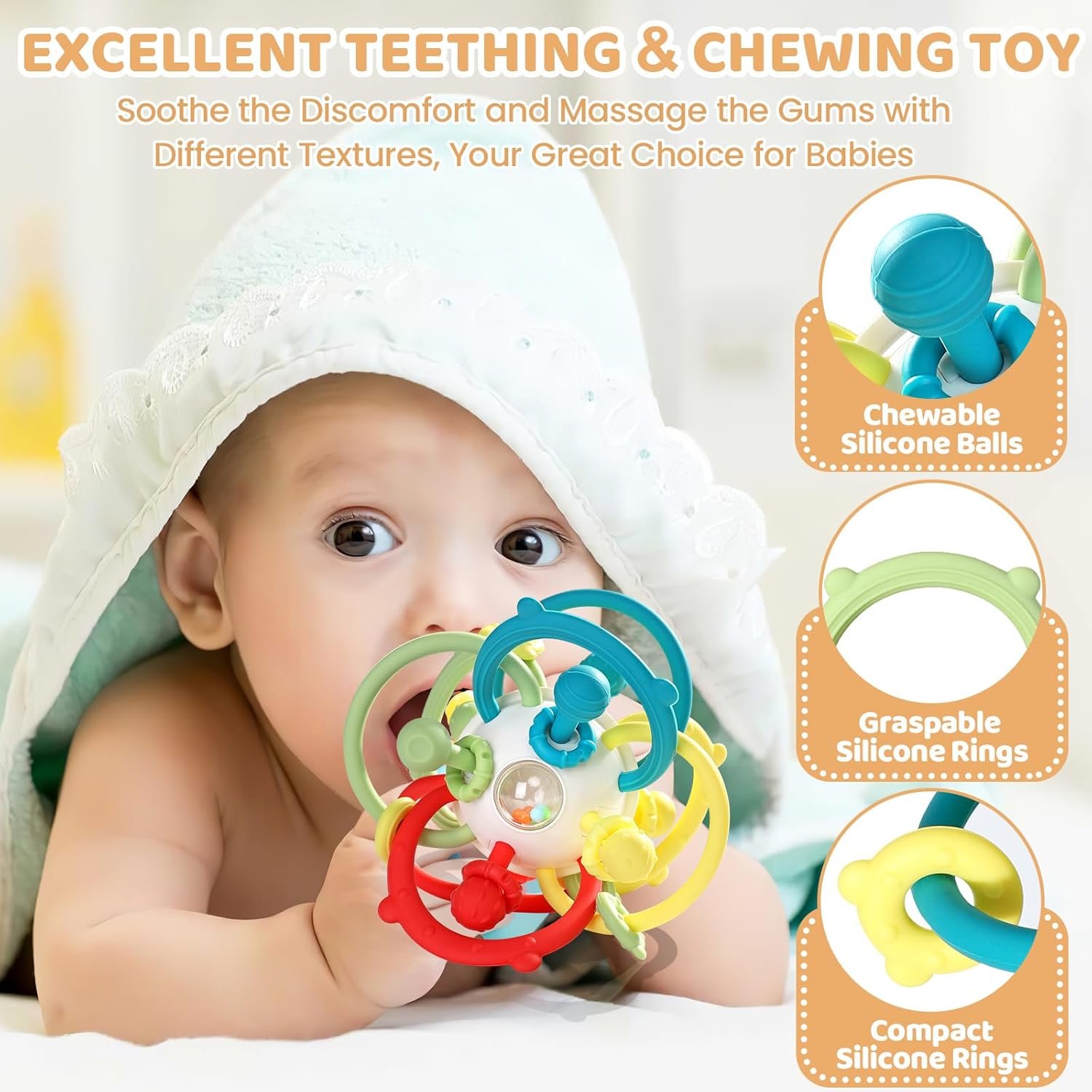 Orzbow Rattle & Sensory Teething Toys for Baby, Montessori Teethers Toys for Babies 3-12 Months, Infant Teething Relief Chew Toys, Stimulating Little Minds & Hands with Educational Toys for Toddlers