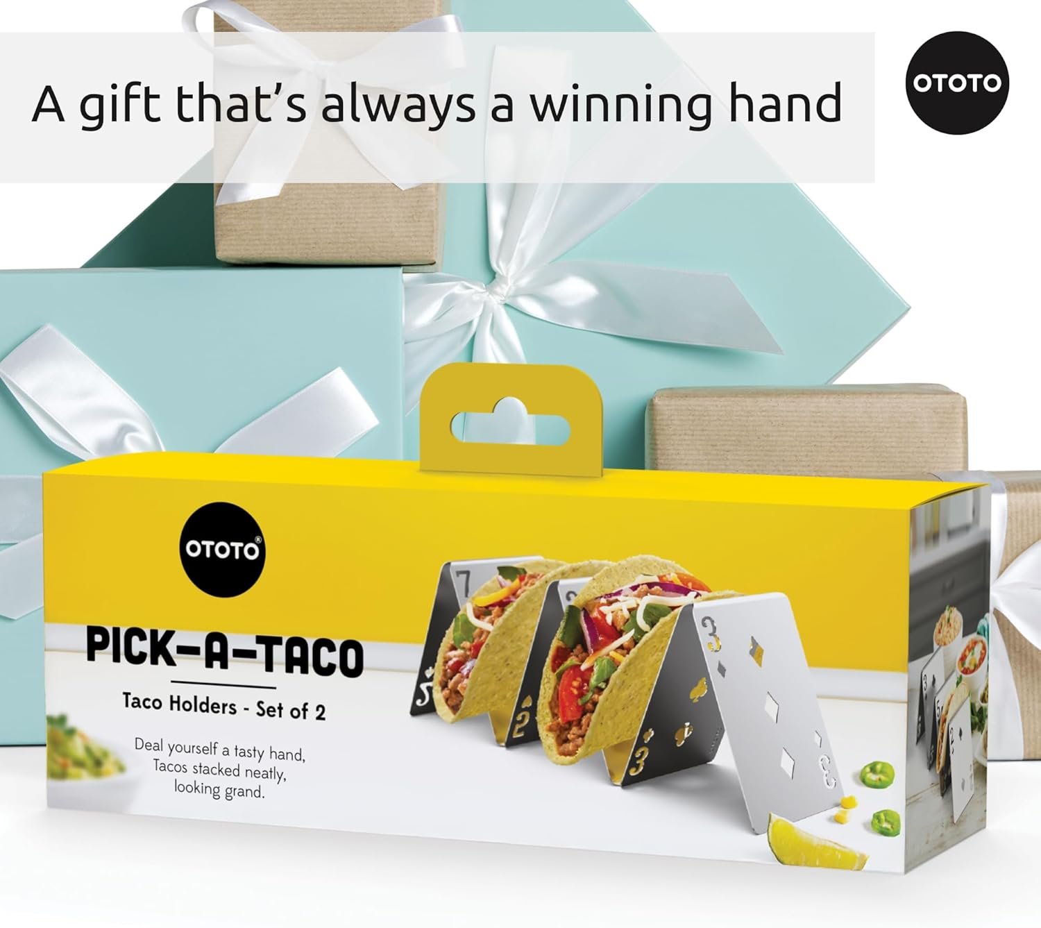 OTOTO Pick-a-Taco Taco Holders Set of 2 – Cool Kitchen Gadgets, Cute Kitchen Accessories, Taco Tray, Taco Shell Holder, Taco Stand, Cards White Elephant Gifts, Kitchen Gifts, Funny Gifts