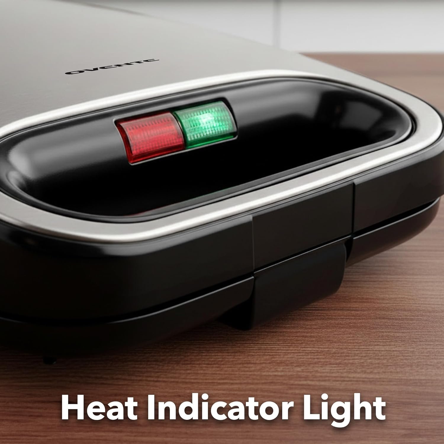 OVENTE Electric Sandwich Maker with Non-Stick Plates, Indicator Lights, Cool Touch Handle, Easy to Clean and Store, Perfect for Cooking Breakfast, Grilled Cheese, Tuna Melts and Snacks, Black GPS401B