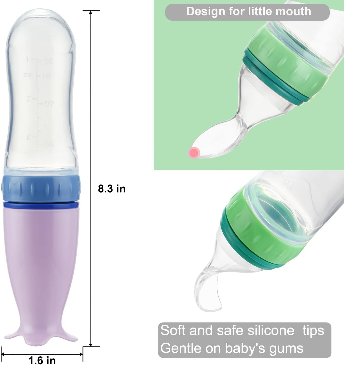 PandaEar 2 Pack Baby Food Spoon Dispenser + 2 Silicone Baby Spoons| Baby Spoon Bottle Feeder| 4 oz Squeeze Spoon Feeder for Baby Food| Travel Friendly Kids Toddlers Boys Girl