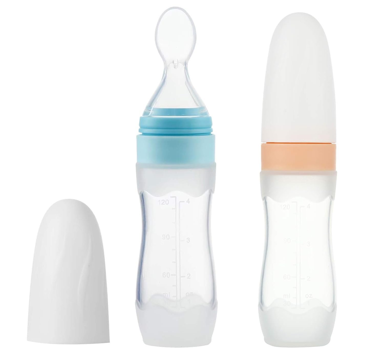 PROTECTIVE CAP & STAND-UP BOTTLE: Our baby food feeders come with a protective cap. Not only does this cap keep the silicone tip clean and hygienic, but also stops you covering your hands with baby food while you fill the food reservoir. These bottles can stand upright by themselves, freeing your hands for the unexpected.