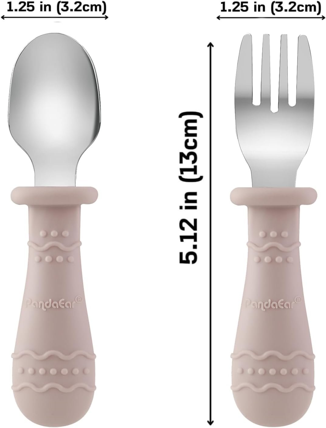 Ergonomic Design for Little Hands: Spoon and fork are designed with easy-to-grip silicone handles and rounded edges for safe and confident self-feeding. The cup’s soft silicone sleeve provides comfort and protection from heat or cold.