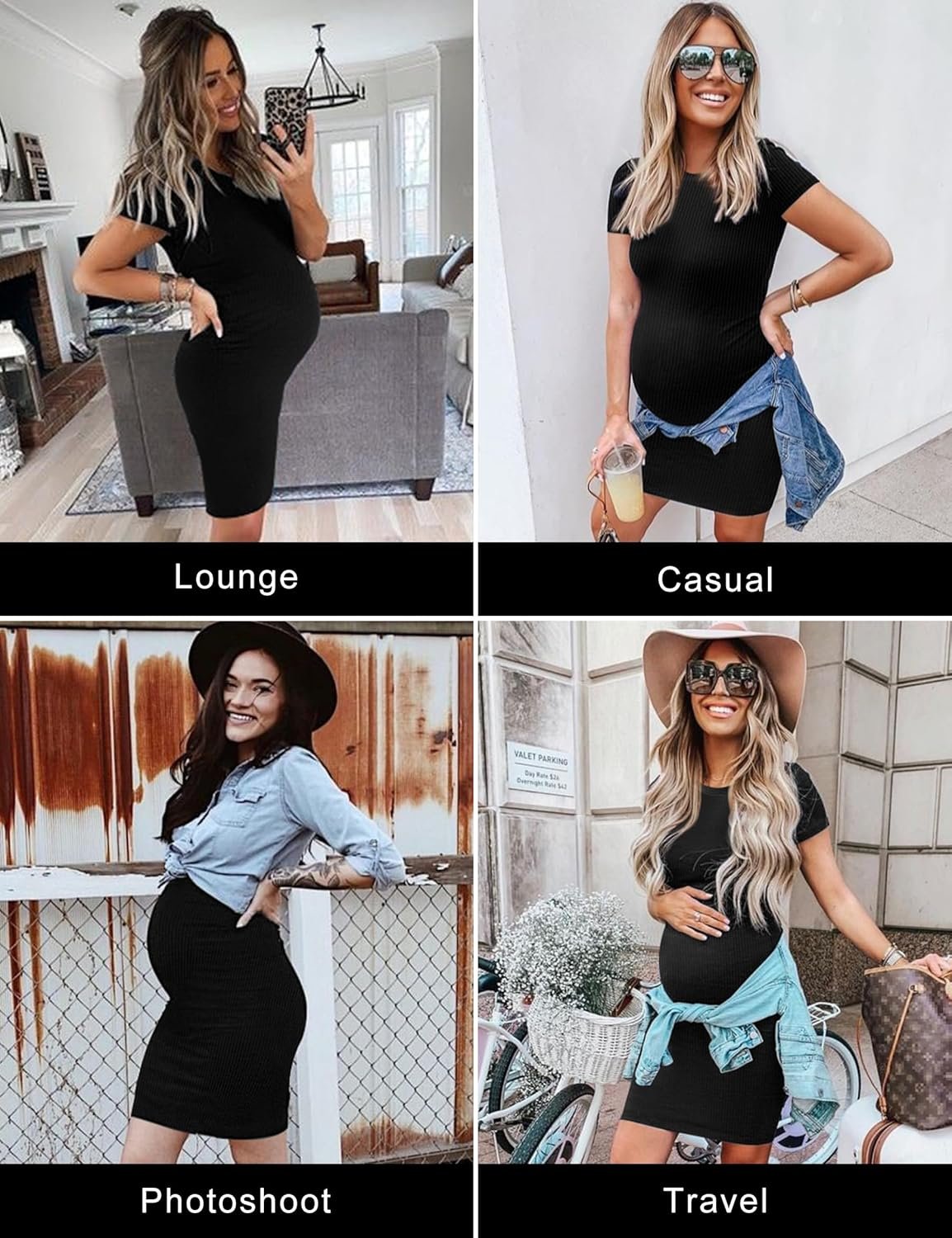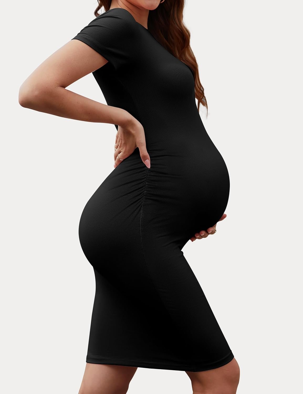 Peauty Maternity Ribbed Crew Neck Bodycon Dress Short Sleeve Baby Shower Dress Casual Lounge Pregnancy Dress