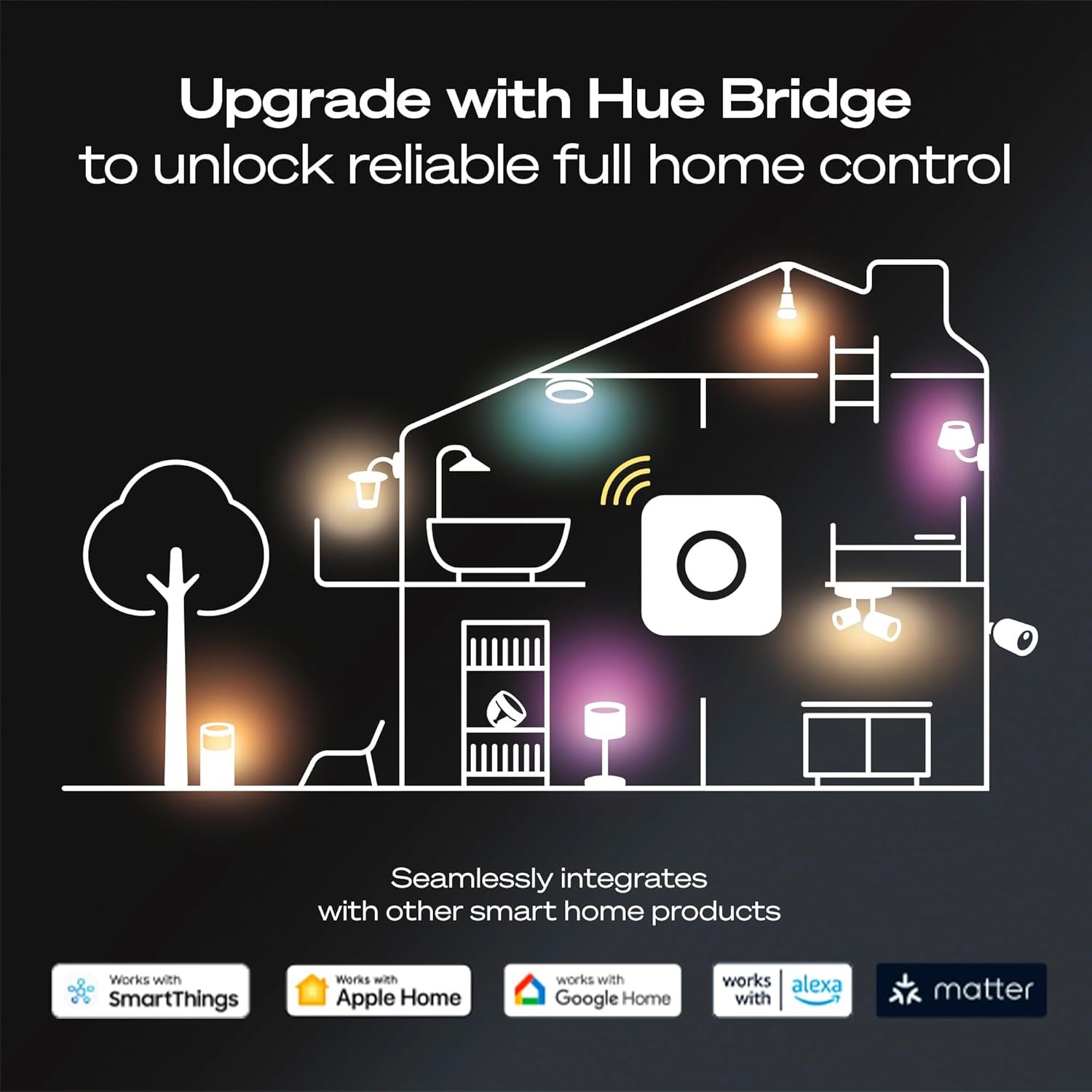 Smooth and sleek, this larger smart button allows you to trigger scenes based on time of day, or cycle through a selection. Time-based light automatically sets your lights to the best color and brightness based on time of day. Scene cycle lets you choose different scenes for up to 10 time slots, which pressing the button will cycle through. Single scene sets one chosen scene. Press and hold the button to dim or brighten the lights in your space. Start or stop an automation — which you can create in the Automations tab — with a simple press. Use the included adhesive to mount the button around your home. The mount doubles as a magnet, so you can also place it on any magnetic surface. This product requires a Bridge, which unlocks the full suite of smart home features, including home security, light syncing, the ability to use smart lighting throughout your entire home, and more.