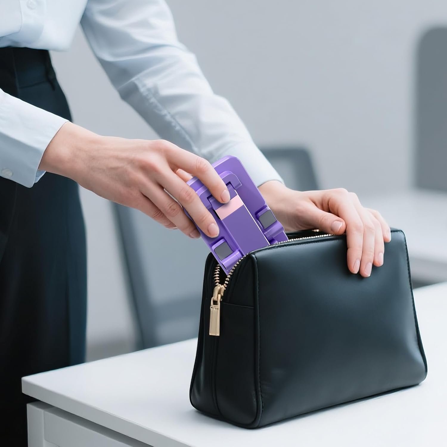 Space-Saving Portable Design; Compact and lightweight , this cellphone stand fits effortlessly in bags or pockets. The foldable iPhone holder for desk doubles as a travel essential for workstations, or flights.