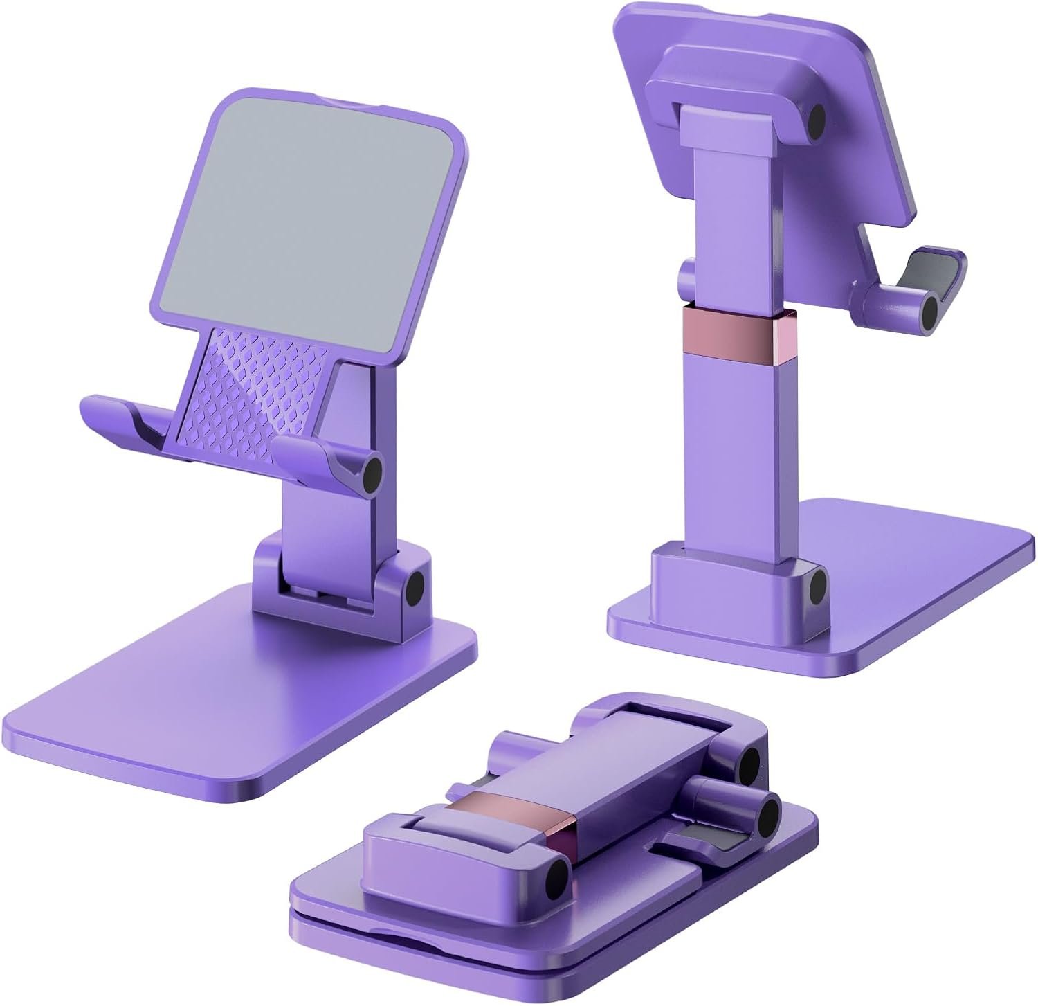 Phone Stand for Desk, Cell Phone Holder Adjustable Cellphone Tablet Stand for Desk Height Angle Adjustable Compact Design for iPhone iPad Android Devices Under 12″ (Purple, 1Pack)