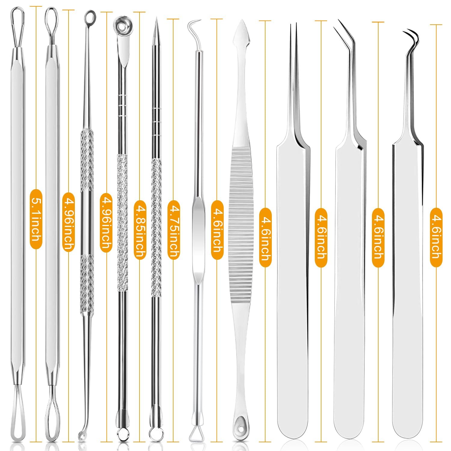 Pimple Popper Tool Kit: 10 different style blackhead remover tool can help to remove blackheads, whiteheads, acne, various, blemishes and zit popping on your chin, cheek, forehead and nose easily. No need to spend thousands with professionals that you can get the same effect and boost your confidence with our pimple extractor.