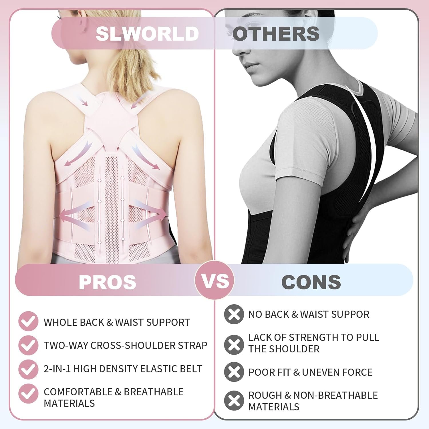 INNOVATIVE & UPGRADED POSTURE CORRECTOR: Designed for effective correction, the SLOWORLD Posture Corrector for women and men helps alleviate the pain associated with scoliosis, spine issues, and hunchback, providing long-term health benefits for people of all ages and lifestyles. Use back brace support regularly to train your body to sit or stand in a healthy posture and to develop muscle memory to keep your back straight, upper and lower back pain relief.