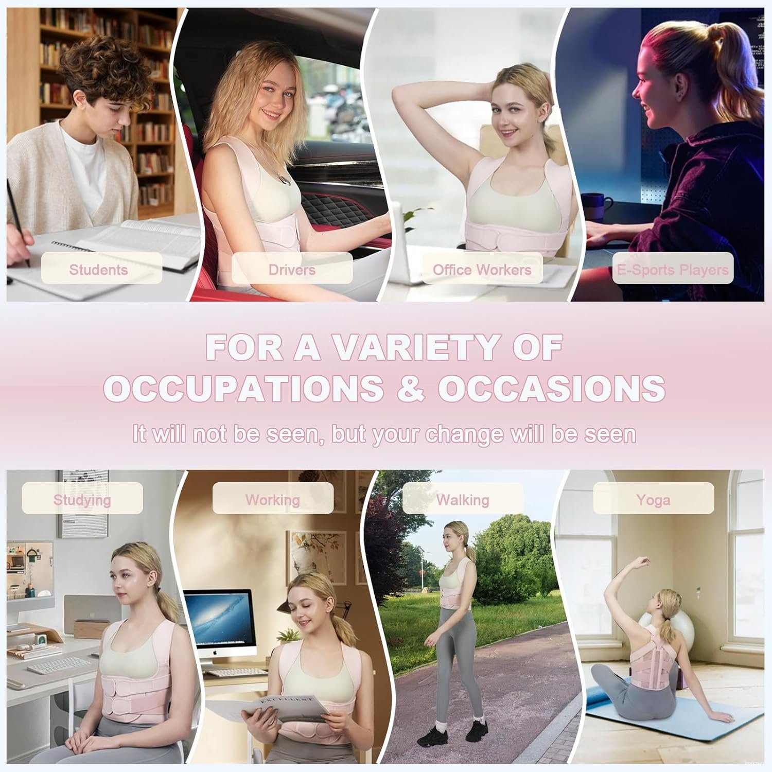 FOR A VARIETY OF OCCASIONS & OCCUPATIONS: Whether you are working/ studying/ driving/ doing housework/ walking/ picnicking/ shopping, etc., our back brace posture corrector are perfect for you. Our posture corrector for women and men can be worn on the outside or in, and you just need to wear a loose coat to hide perfectly. You can wear this back support to do whatever you want (except sleep) without wasting any extra time. Change is happening, it won’t be seen, but your change will be seen.