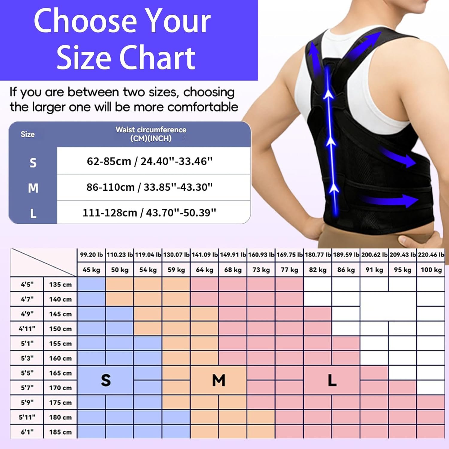 FULLY ADJUSTABLE FOR A PERFECT FIT:Back Brace Posture Corrector is Features Strong, Easy-to-Adjust Straps for The Shoulders and Waist. Whether You’Re a Man or a Woman, You Can Customize The Tightness for Effective, Comfortable Support That Fits Your Unique Body Shape.