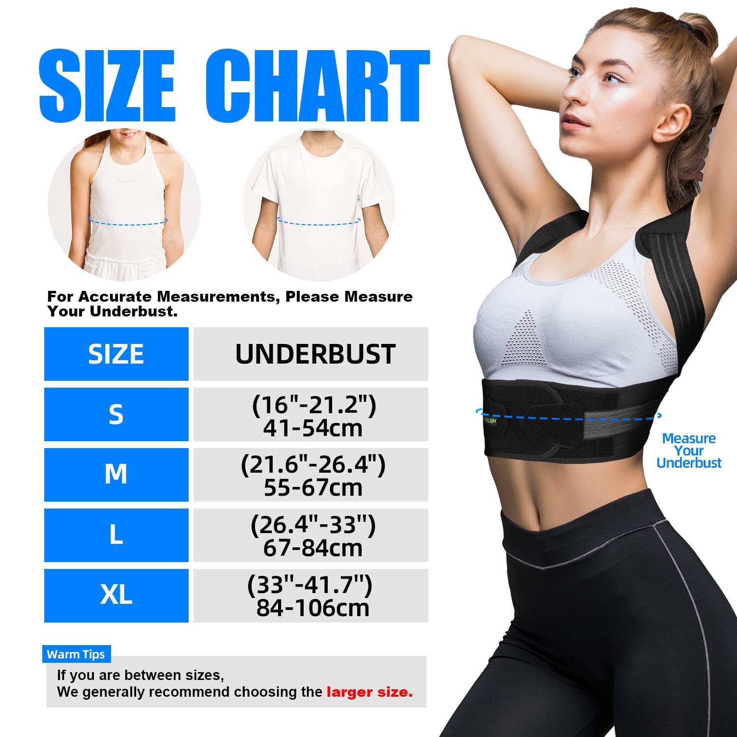 【Choose 4 Sizes For Best Fit】4 sizes to choose from which for underbust from 15″ to 50″ while strong, Velcro straps let you adjust for a fit that’s just right for you! Posture corrector for teens or adults. Ideal for students or workers who sit all day at desk and have posture problems. S fits 16″~21.2″ in underbust circumference, M fits 21.6″~26.4″ in underbust, L fits 26.4″~33″ in underbust, XL fits 33″~41.7″ underbust. (Note: We recommend Choose the Bigger Size and adjust for the best fit)