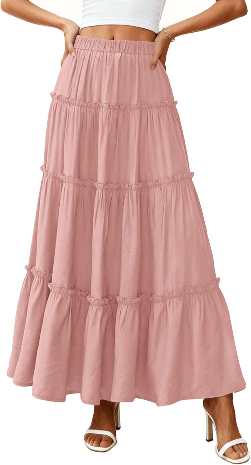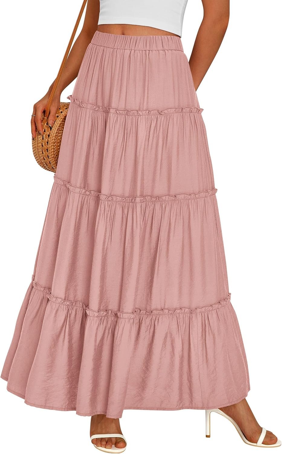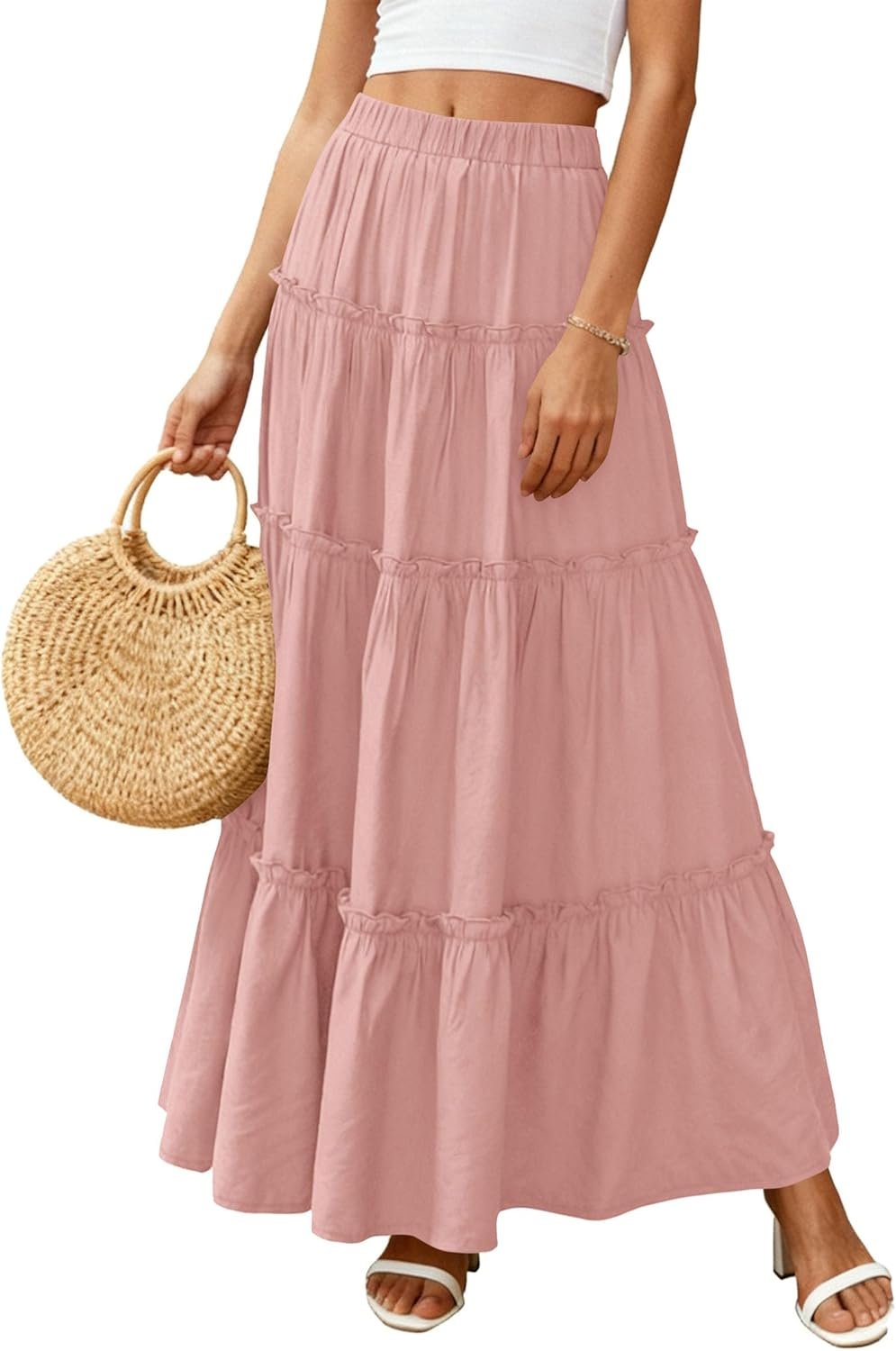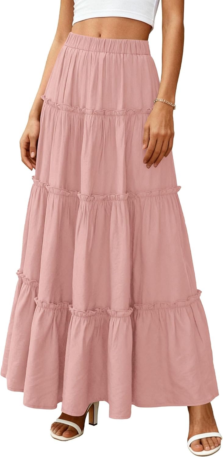 PRETTYGARDEN Tiered Ruffle Maxi Pleated Skirt Women Spring Break Outfits