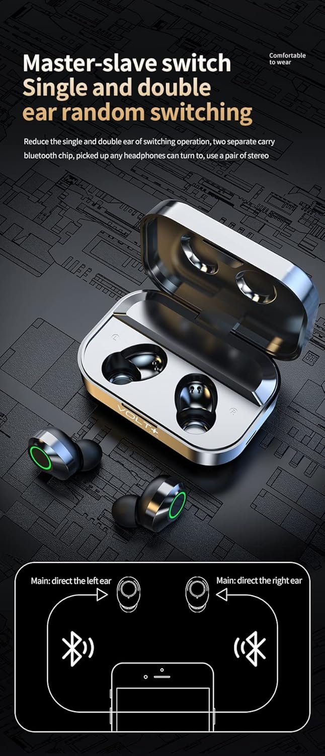 ⚡【WHAT DO YOU GET?】: You will get a Portable Bluetooth Volt Plus Tech Version TWS earphone with a Power Bank/Pack Storage Digital Display box, and the charging bank can recharge for 36 Hours on the headset/earphones at any time, making travel and sports more exciting. Can be used as a gift for your family and friends.