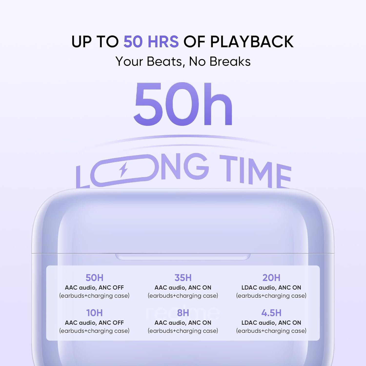 LONG BATTERY LIFE: Enjoy up to 50 hours of total playback time with the charging case for extended listening sessions