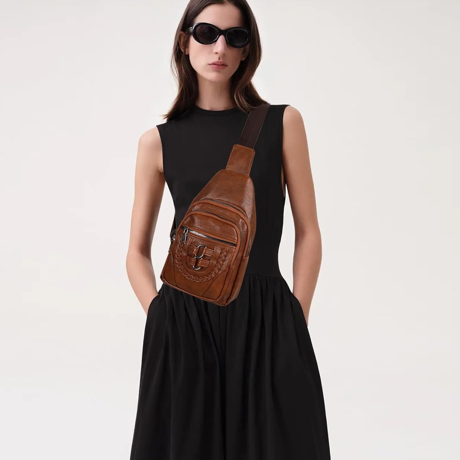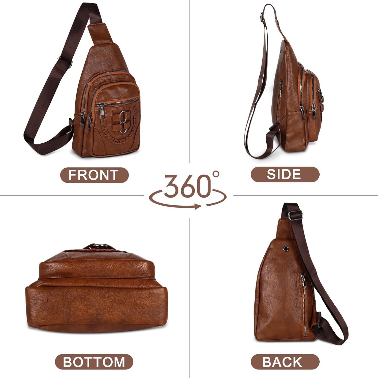 Relang Sling Bag for Women Crossbody, Leather Cross Body Fanny Packs for Women, Trendy Chest Bag for Travel and Daily Use