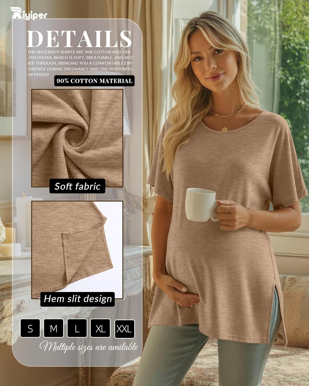 Riyiper 3 Pack Women’s Maternity Tunic Shirts Cotton Summer Pregnancy Clothes Loose Oversized Split Side Blouse Tops