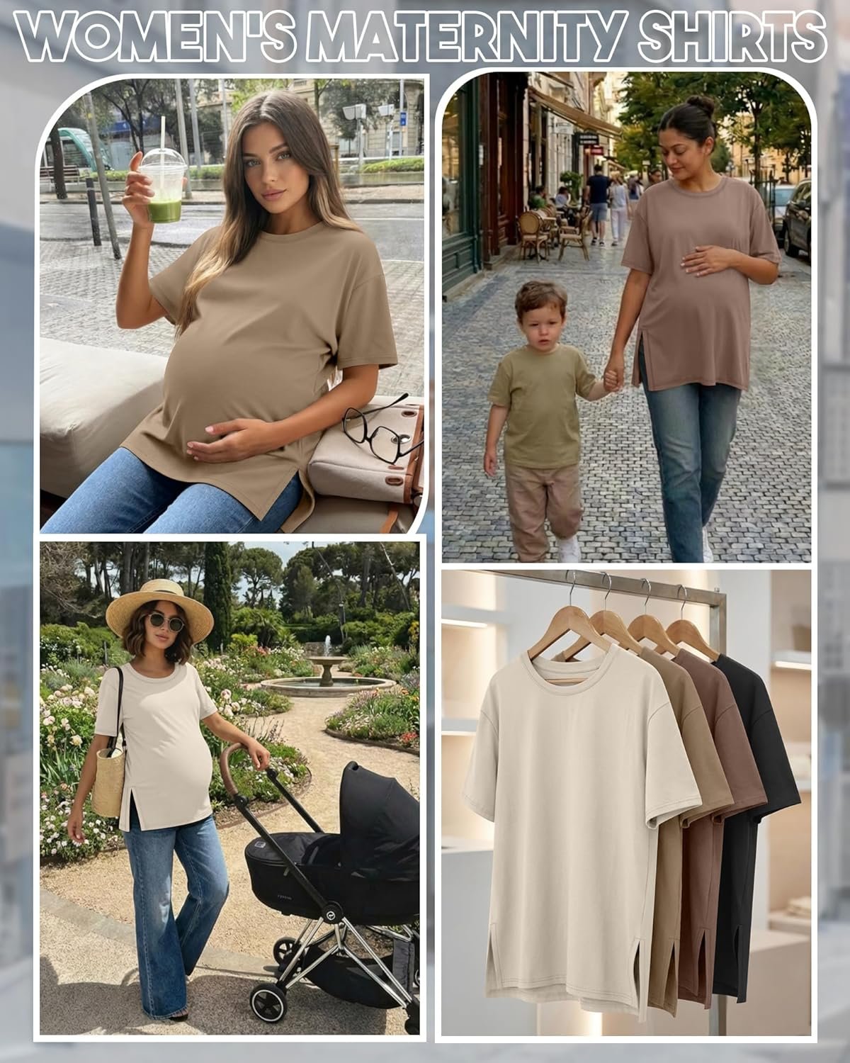 Riyiper 4 Pack Women’s Maternity T Shirts, Short Sleeve Split Side Pregnancy Tee Loose Casual Crewneck Maternity Clothes