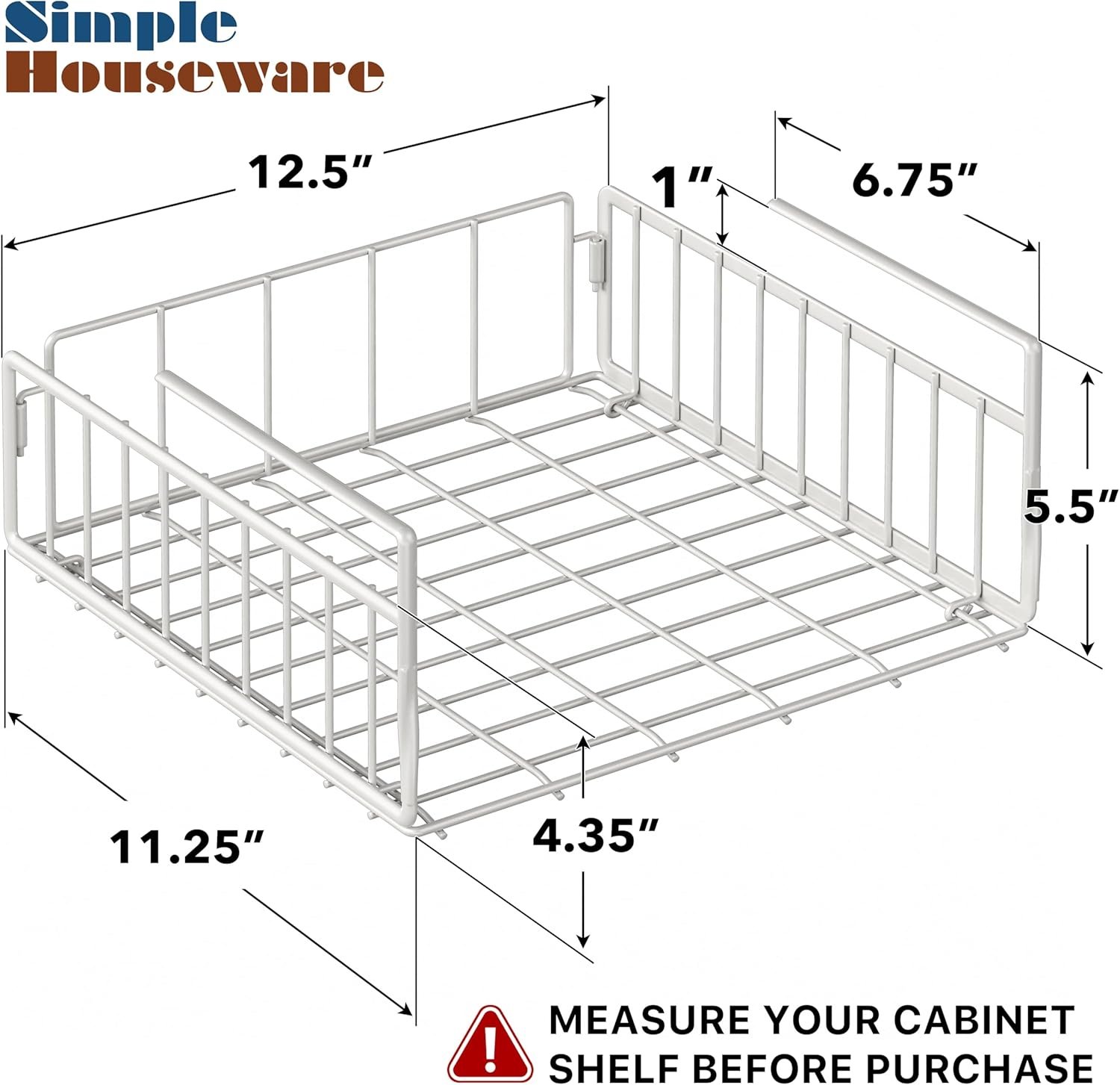 Simple Houseware Under Shelf Basket, White – 2-Pack Space-Saving Storage Organizer for Kitchen, Pantry, Closet, Office – Wire Metal Shelf Organizer, No Tools Required