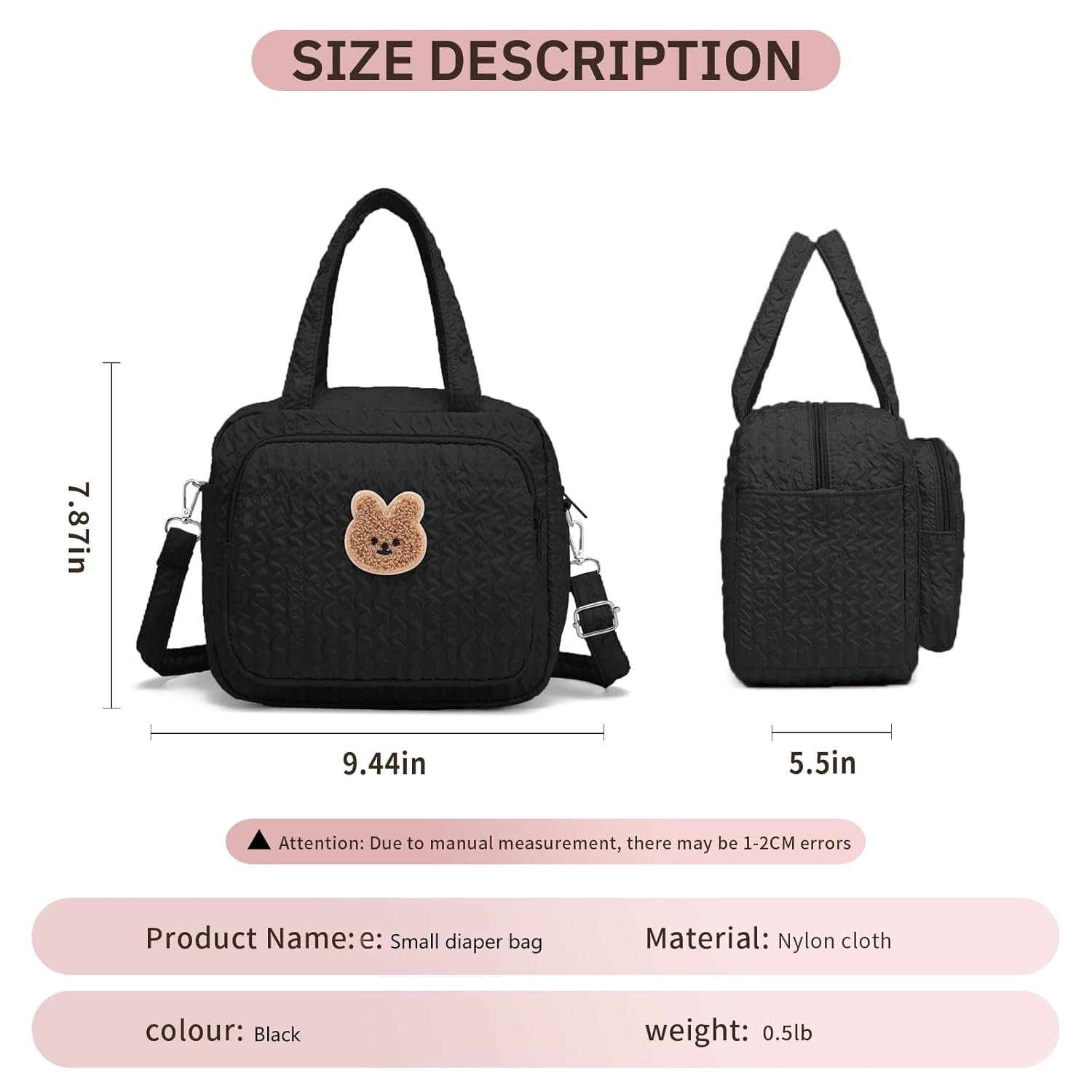 Lightweight Diaper Bag – Weight:0.5lb,Size:9.44″x5.5″x7.87″