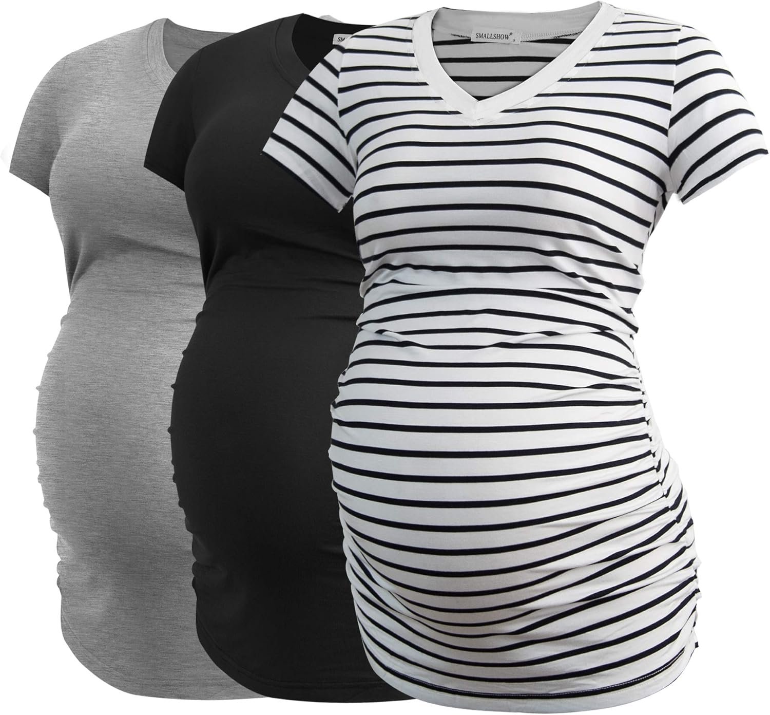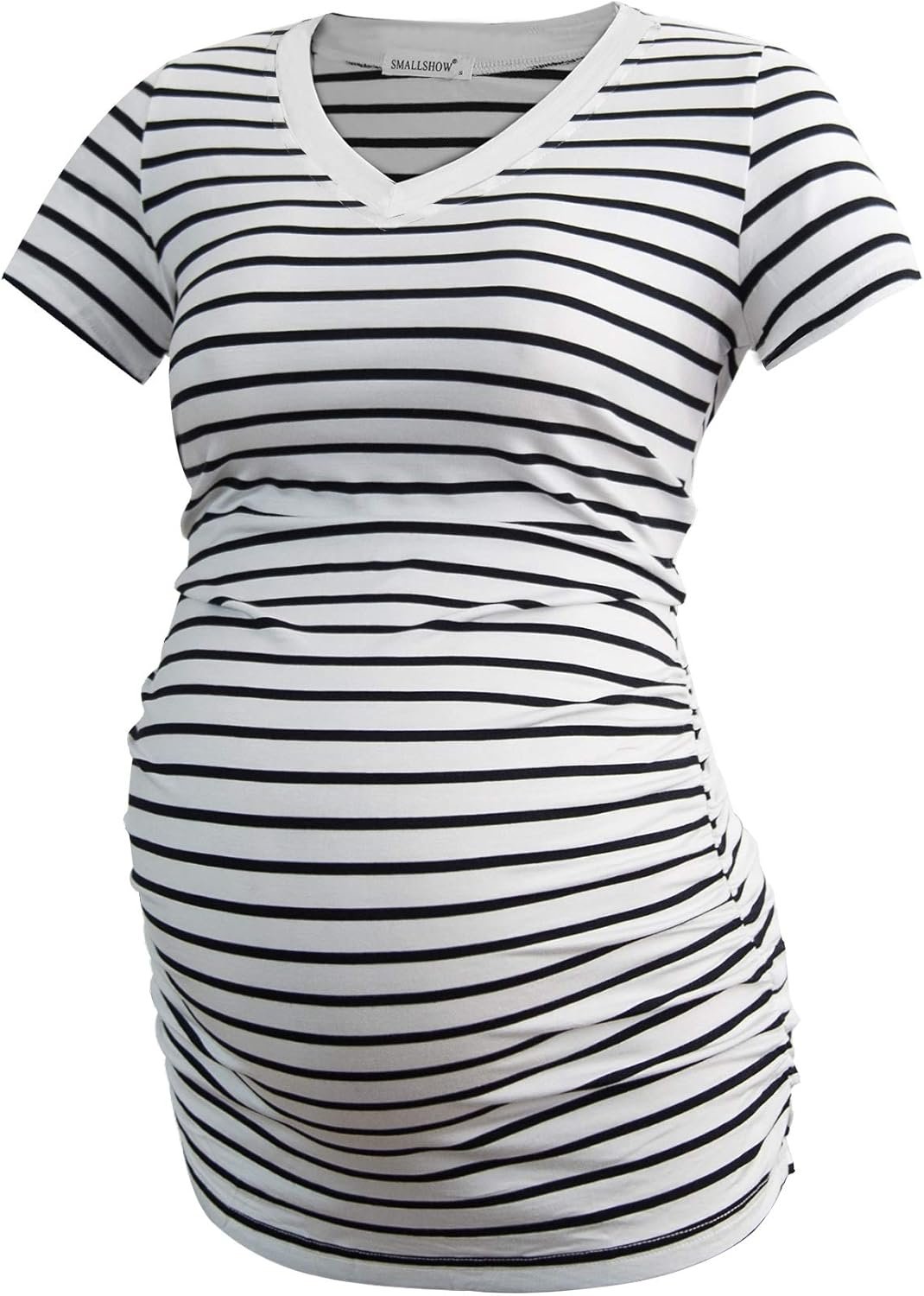 Smallshow Women’s V Neck Maternity Clothes Tops Side Ruched Pregnancy T Shirt