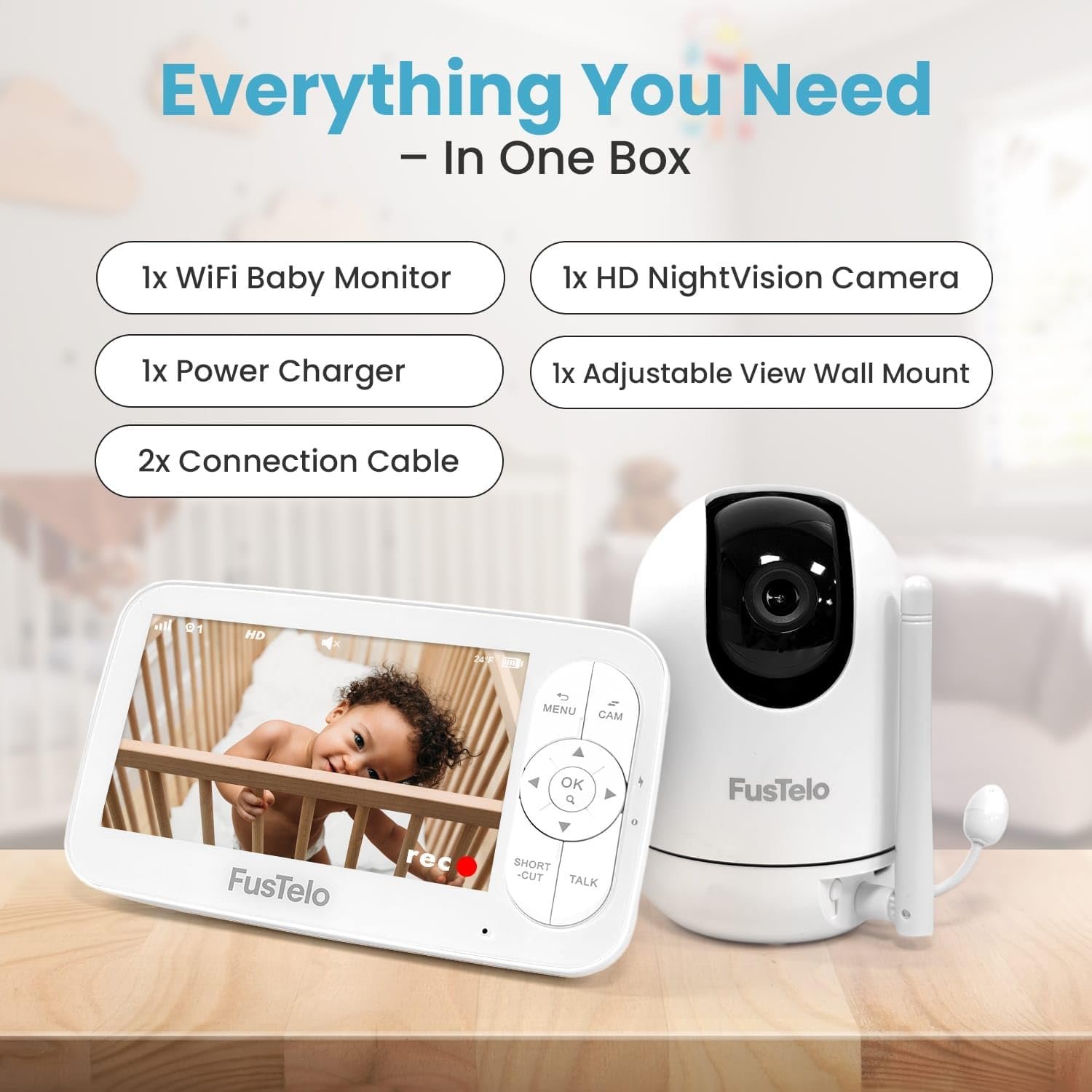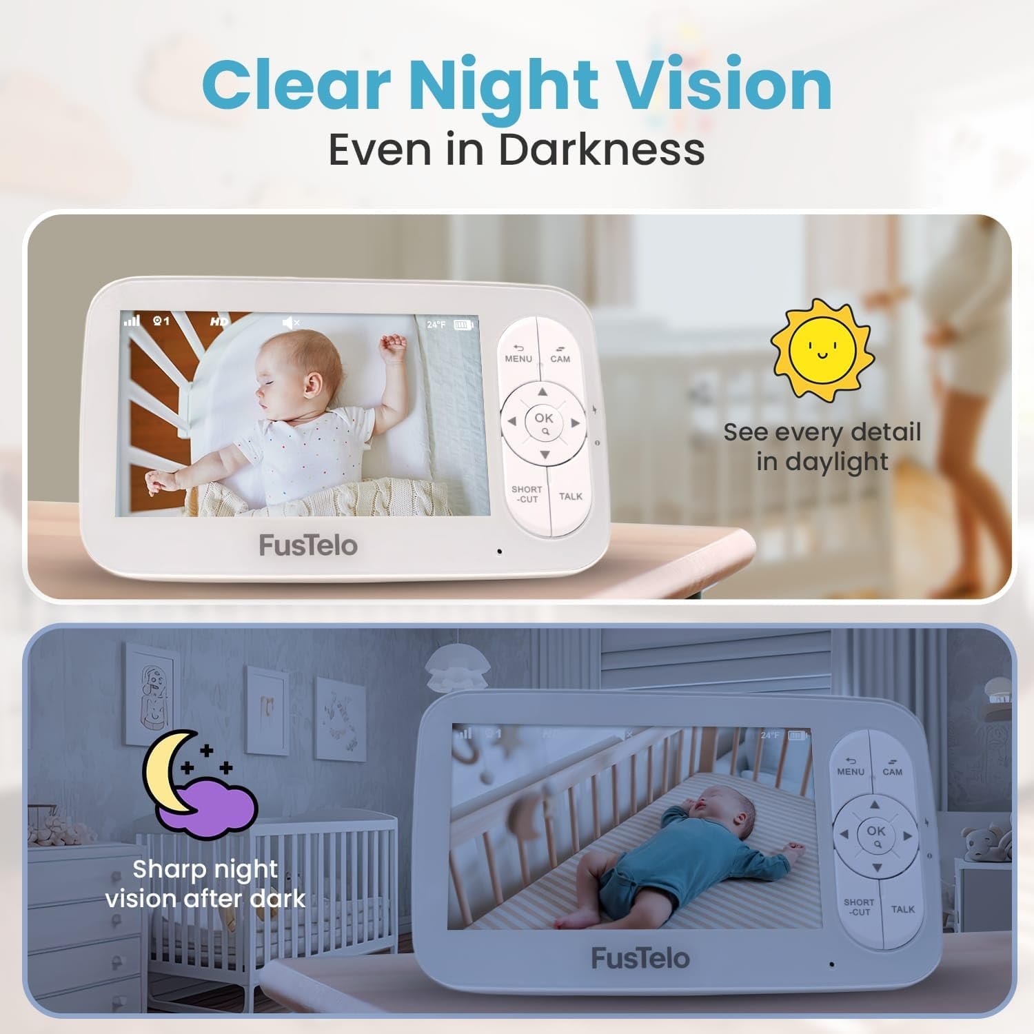 Long-Lasting Battery & Two-Way Audio Built-in 5000mAh battery delivers extended monitoring time without constant charging. Talk and soothe your baby in real time with crystal-clear audio.