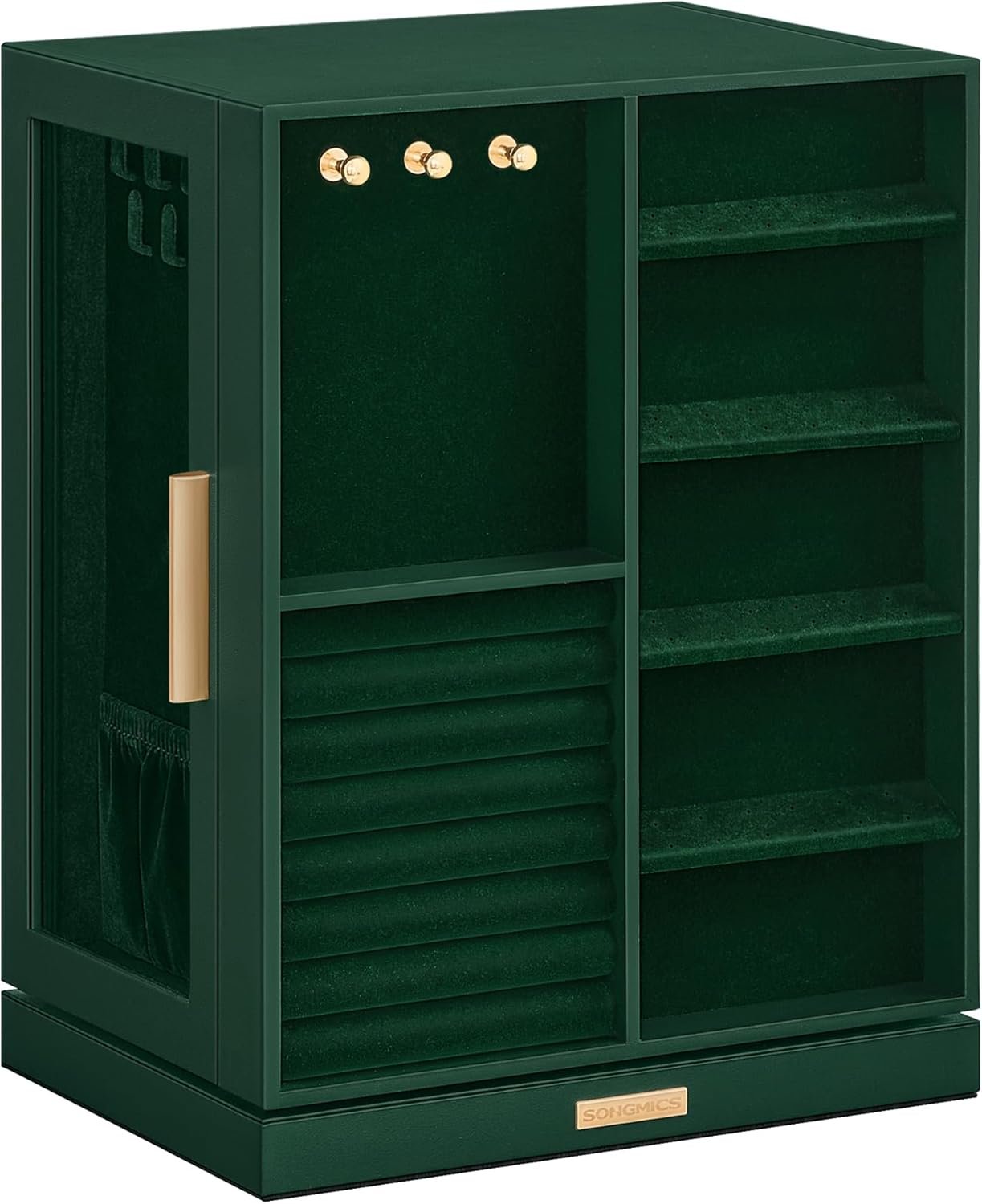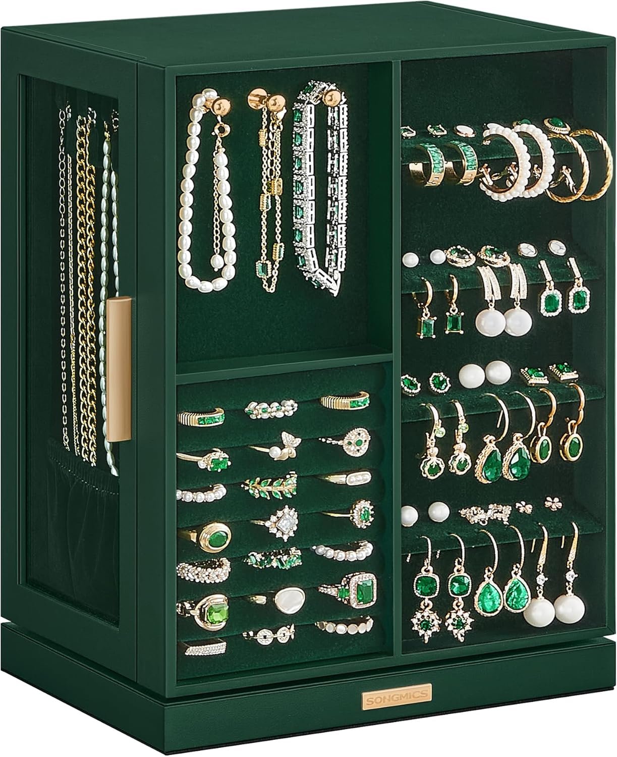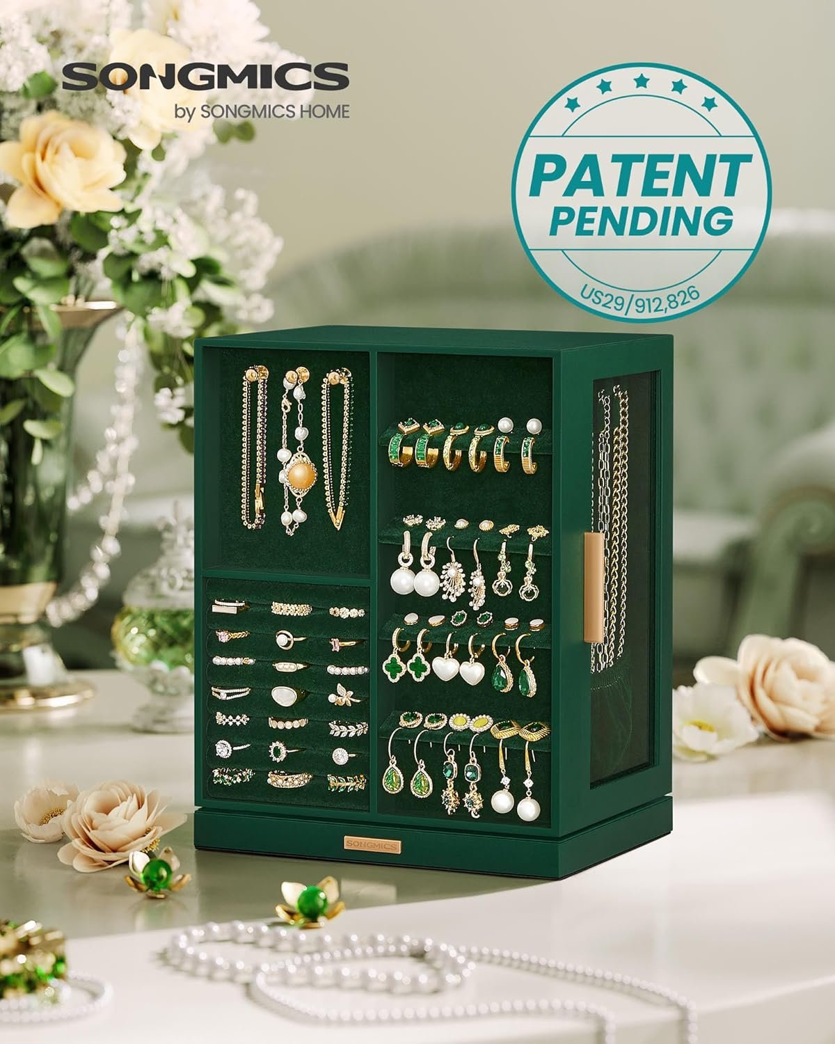 SONGMICS Jewelry Box 360° Rotating, Jewelry Storage Case with 5 Drawers, Jewelry Organizer, Glass Window, Spacious, Vertical Jewelry Storage, Open Design, Great Gift, Forest Green UJBC170C01