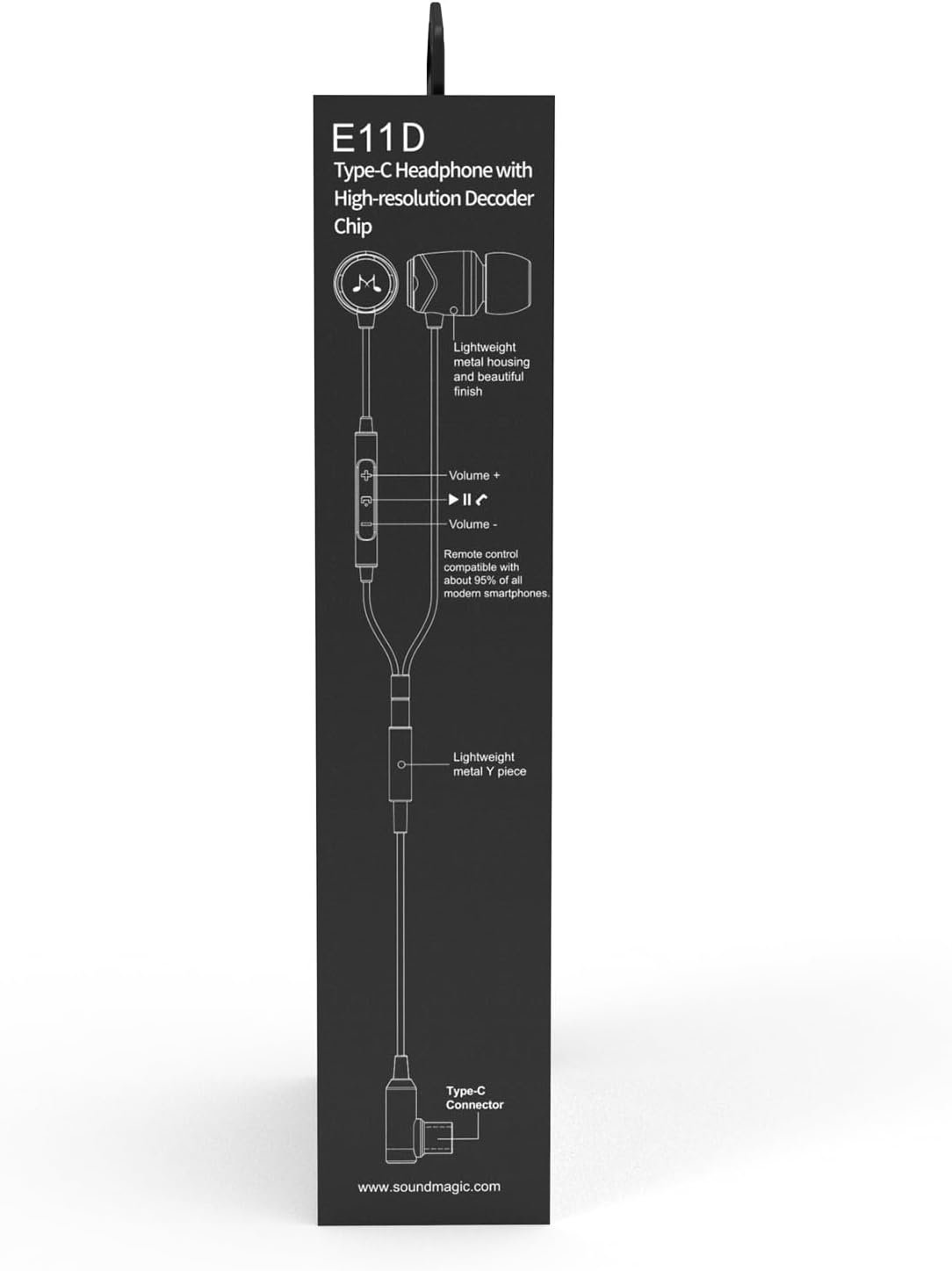 SoundMAGIC E11D USB-C in-Ear Stereo Headphones with 10mm Drivers, Metal Housing, L-Shaped Plug, in-Line Controller, HiFi Sound,Black