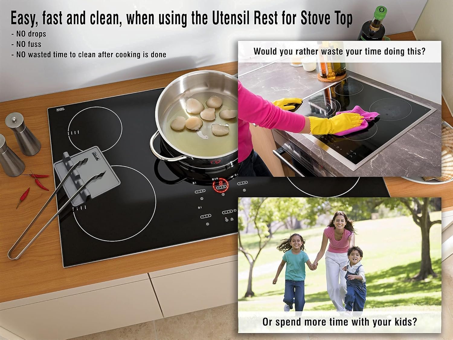 100% BPA Free Food Grade SiliconeThe raised edges of the tray prevent any liquids from getting on your stove top, counter top or kitchen tableSilicone is a heat resistant material. At 300F it will not be affected at all for any period of time, It withstands use even at 400F for 10000 hours or more and can take even 650F for short periods Easy to wash by hand using a soapy sponge but you can just put it in the dishwasher next to the dishware
