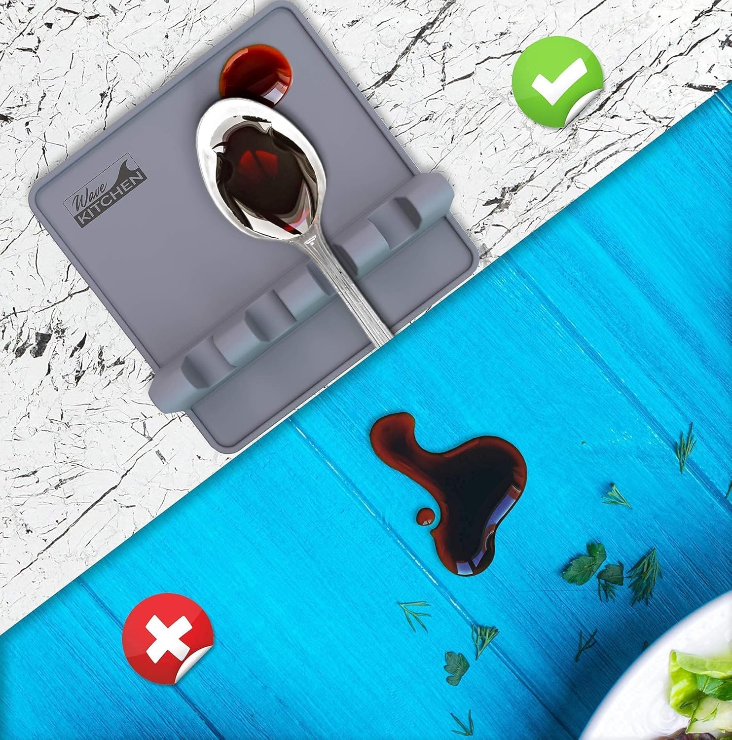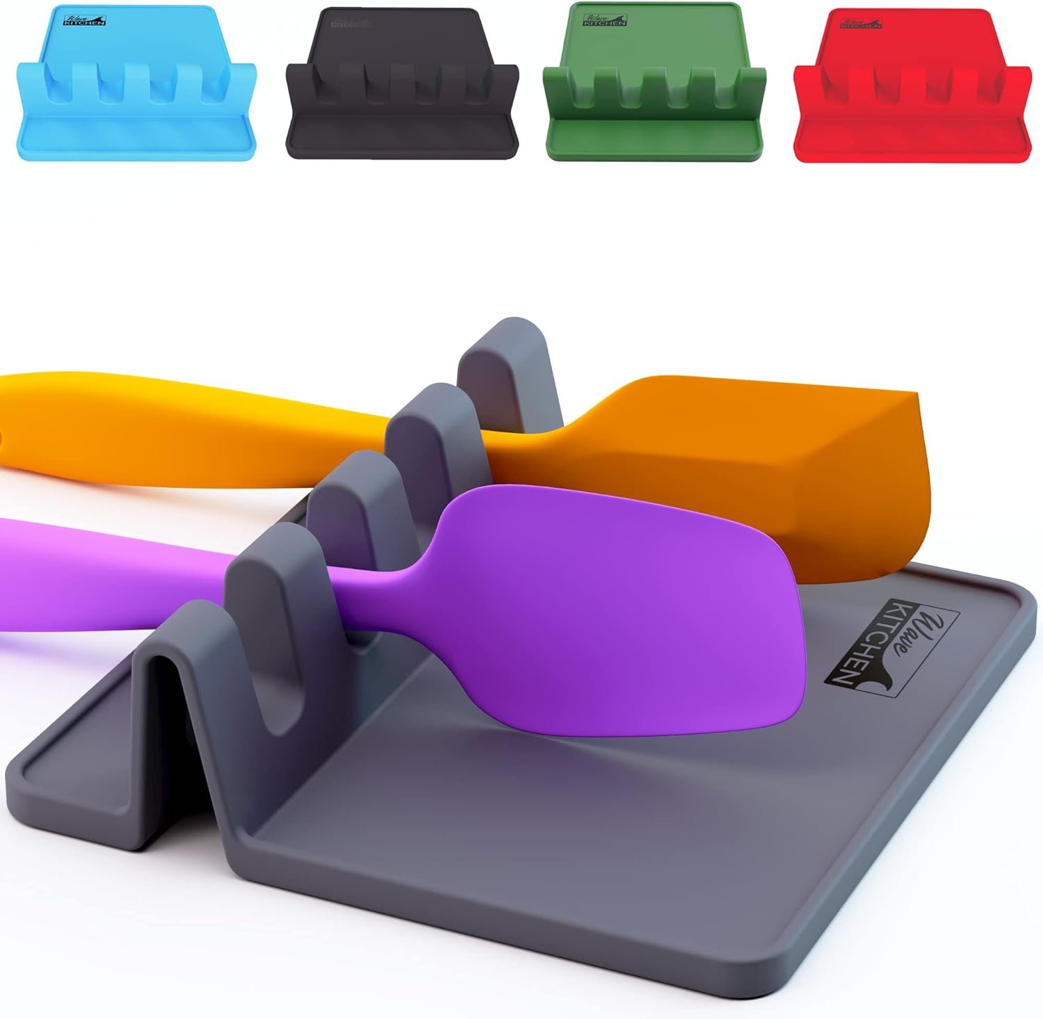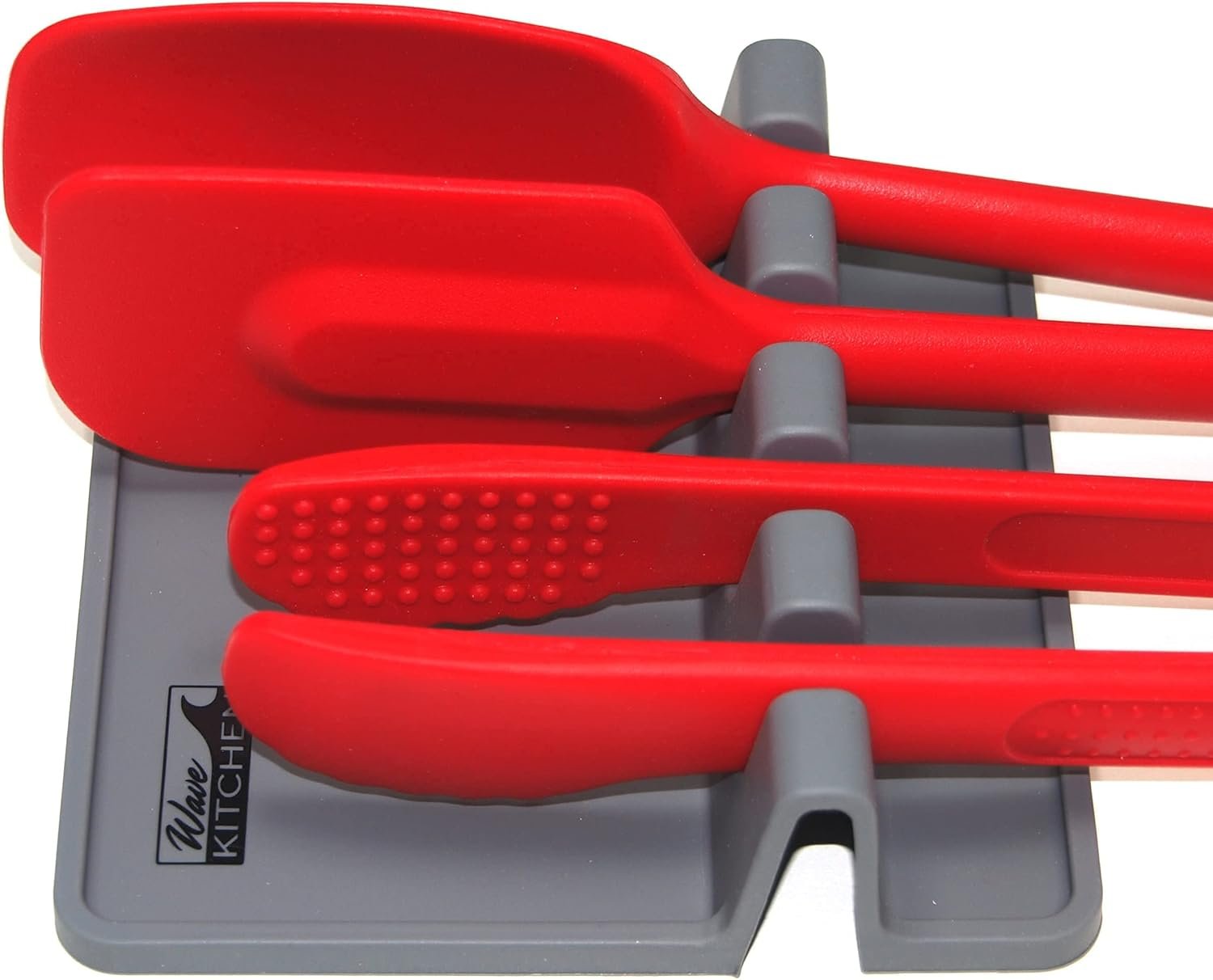 Spoon Rest to Keep the Stove Top Clean, Silicone Utensil Rest with Drip Pad, Spoon Rest for Kitchen Counter while Cooking for up to 4 Kitchen Utensils by Wave Kitchen – Grey