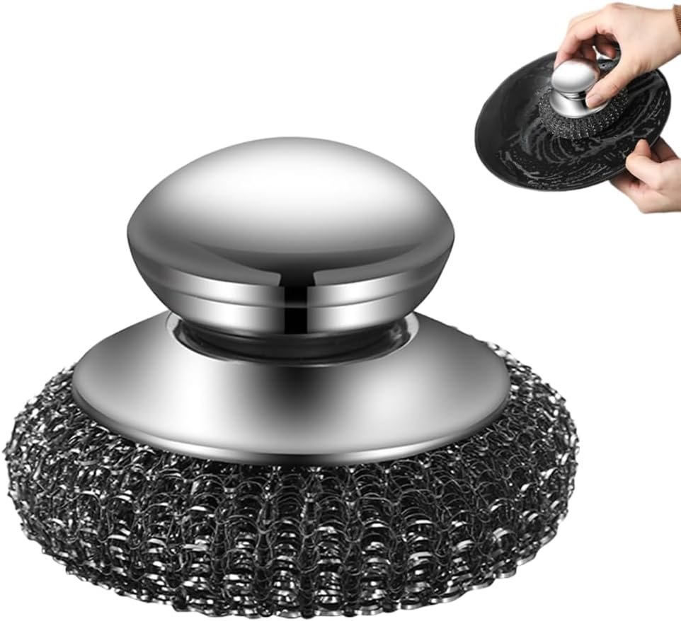 Steel Wool Scrubber with Handle, Upgrade Heavy Duty Stainless Steel Dish Scrubber for Cleaning Dishes, Iron Pots, Stoves, Kitchen Sink (1 pcs)