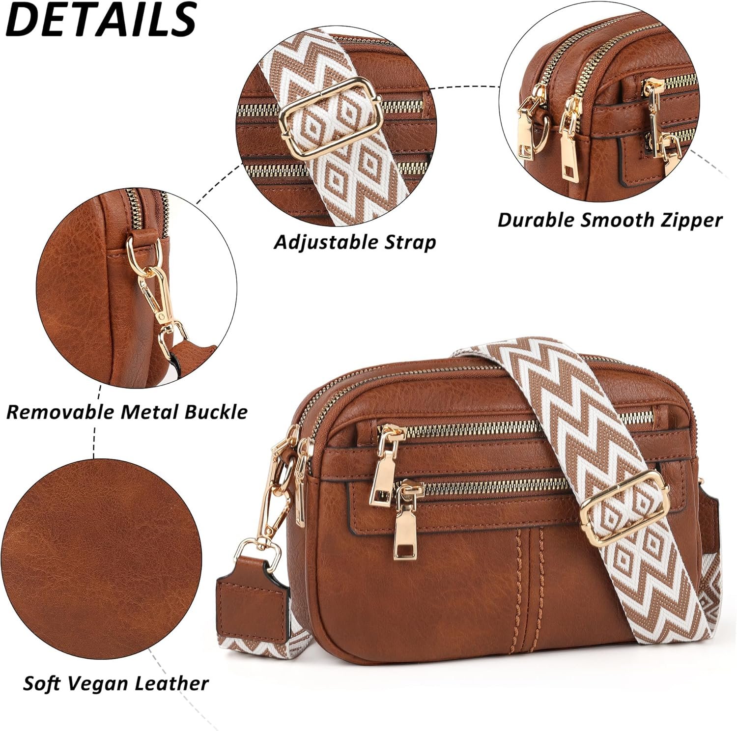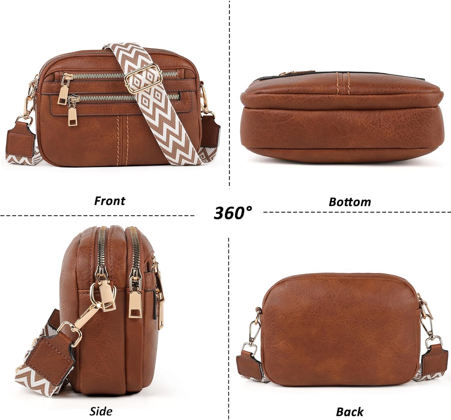 TANTOMI Crossbody Bags for Women, 6-Pockets Cross Body Purse, Vegan Leather Handbags Shoulder Bag for Travel, Gifts for Women