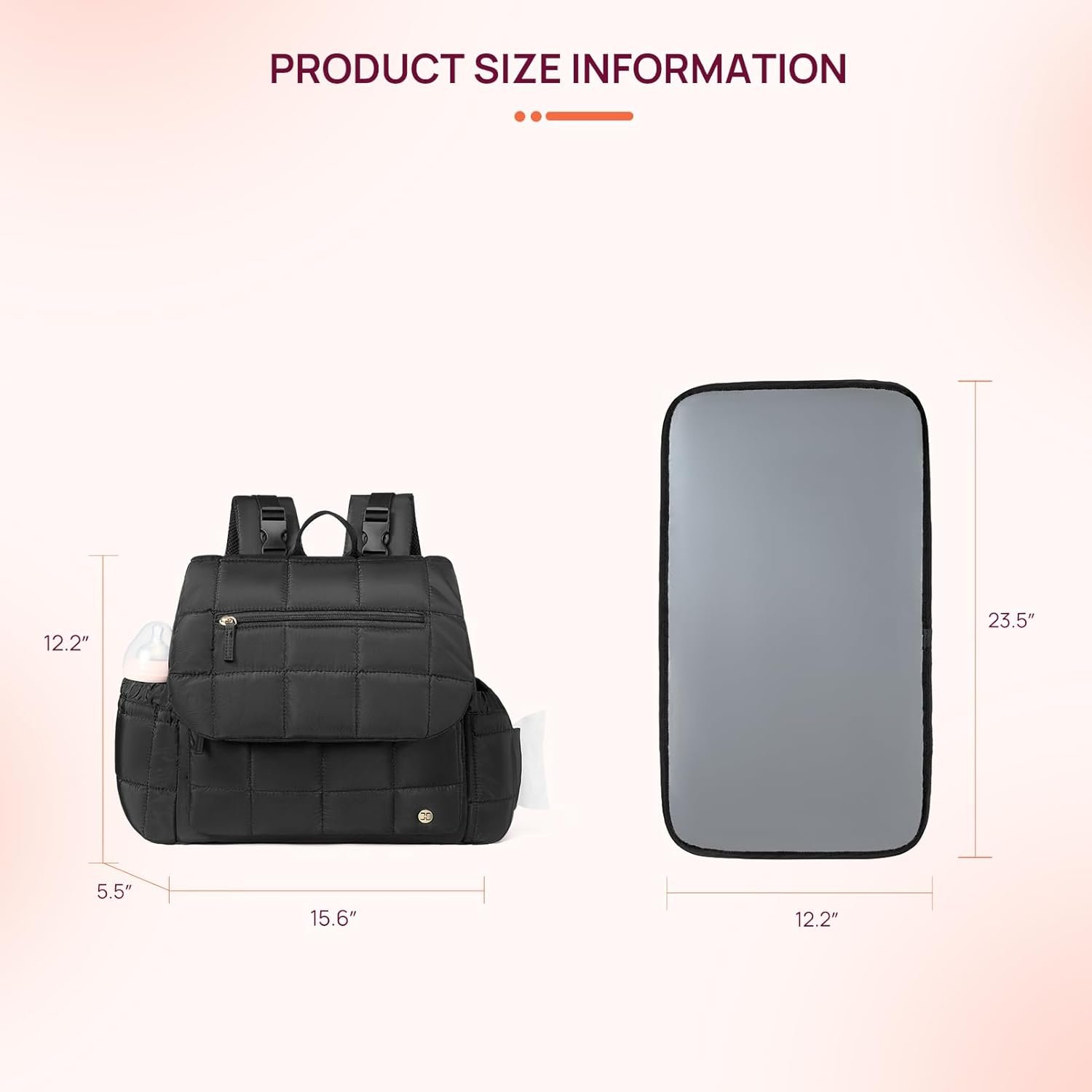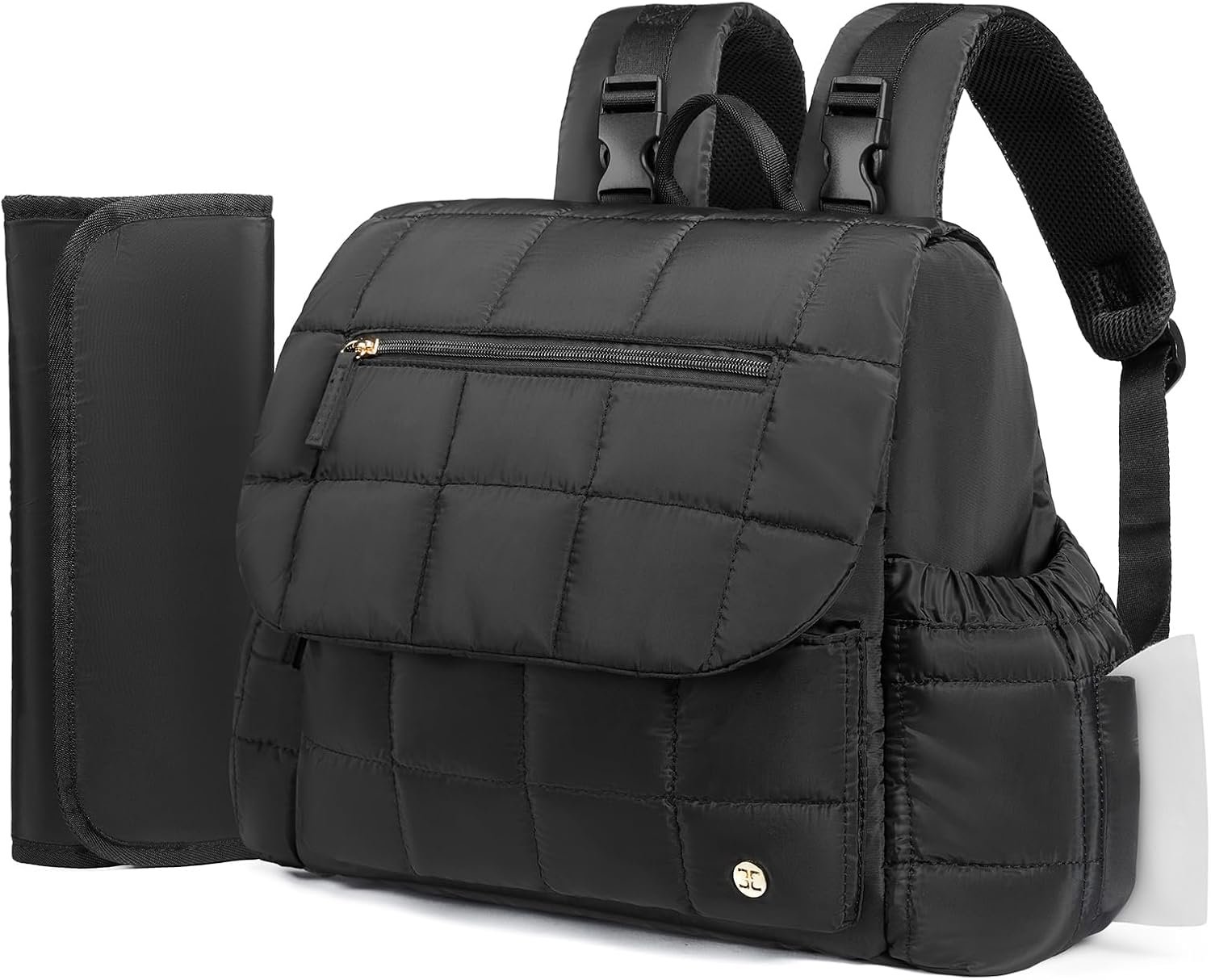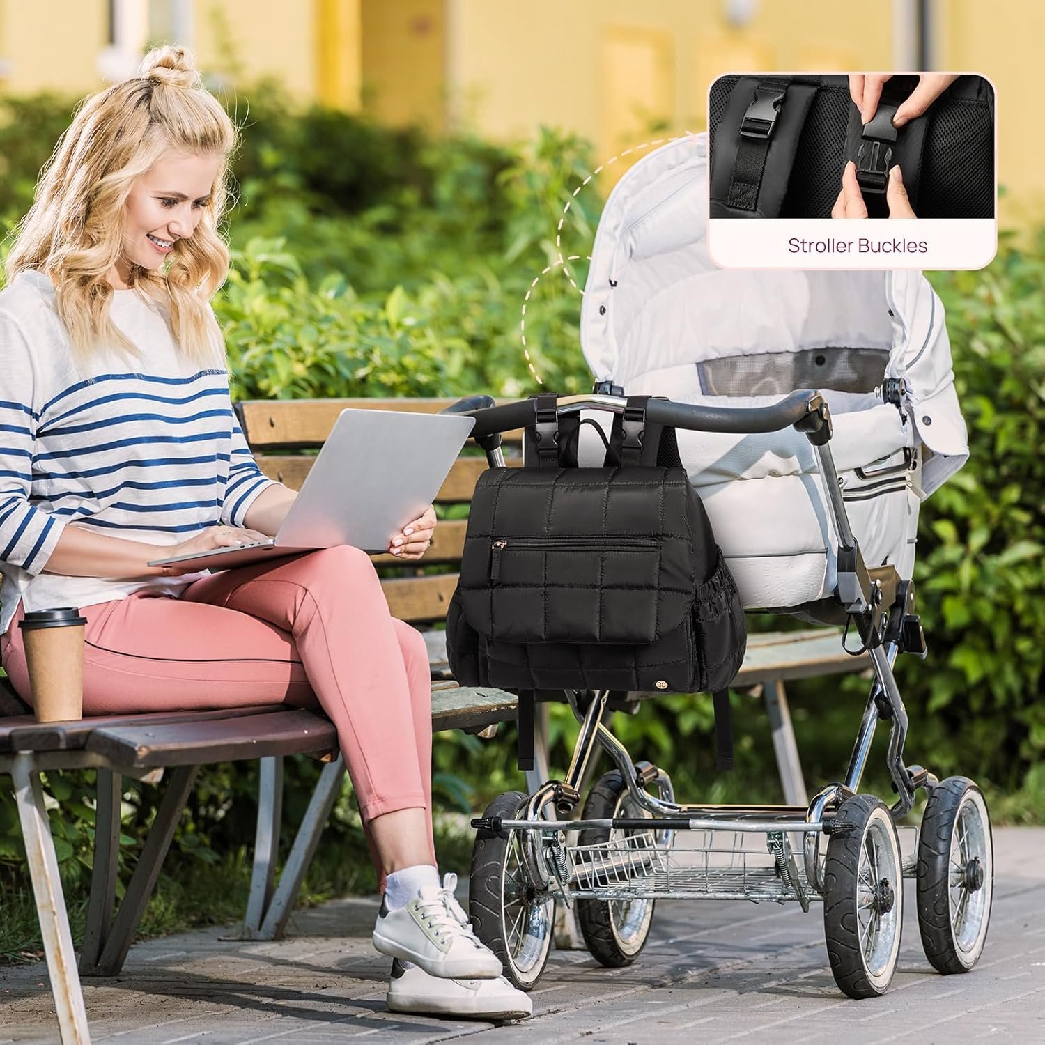 Telena Diaper Bag Mini Diaper Backpack with Changing Pad, Puffer Baby Travel Bag with Insulated Pockets, Stroller Straps, Black