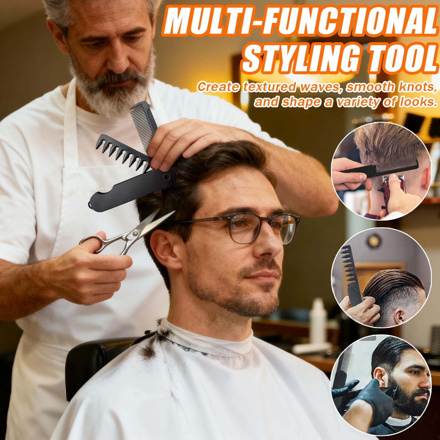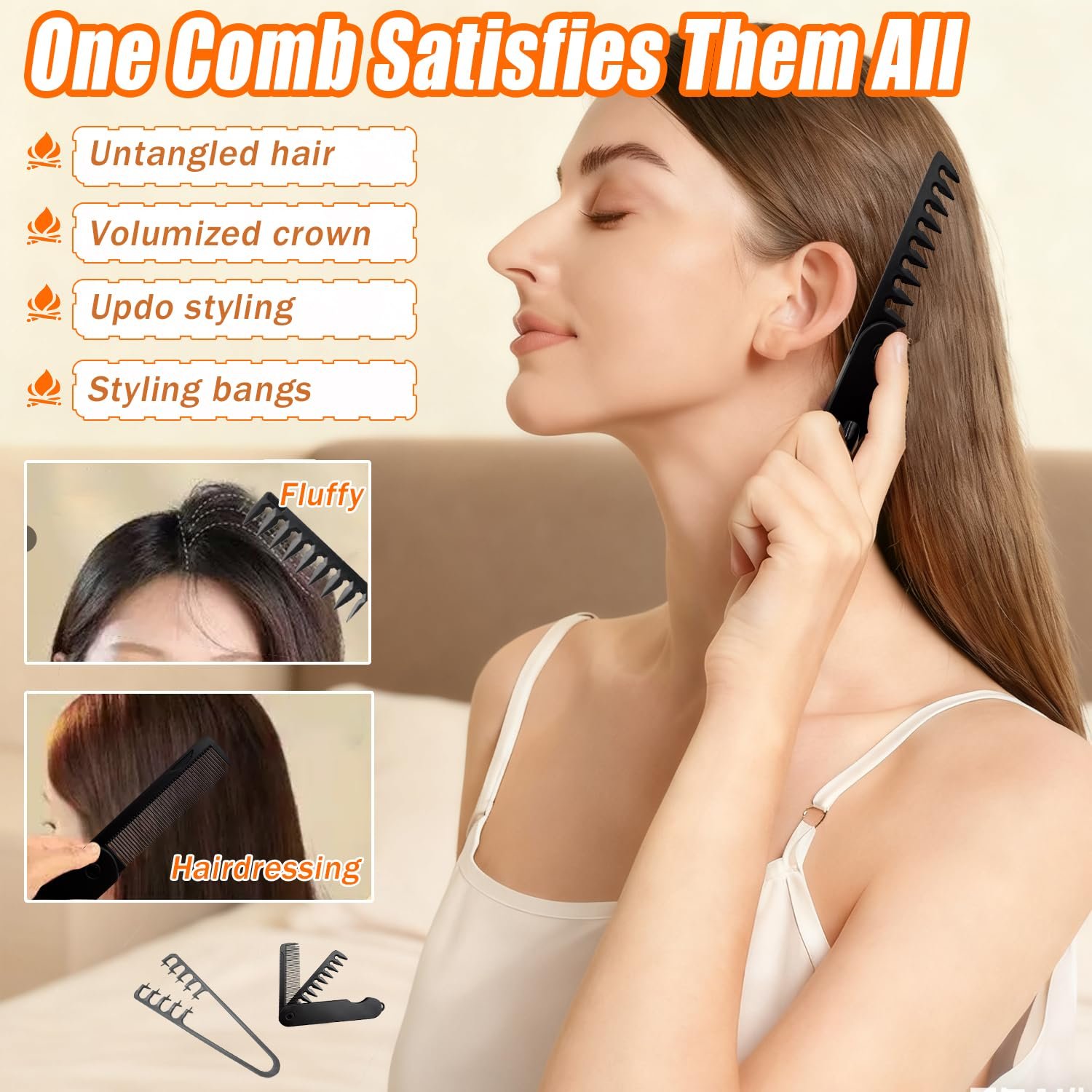 Texture Comb, Voluminous Wide Toothed Hair Comb,Travel Folding Design, Wide & Fine-Toothed Dual-Purpose SetBangs Seam Grooming Accessory for Women Men, ABS plastic with textured grip(1 SET)