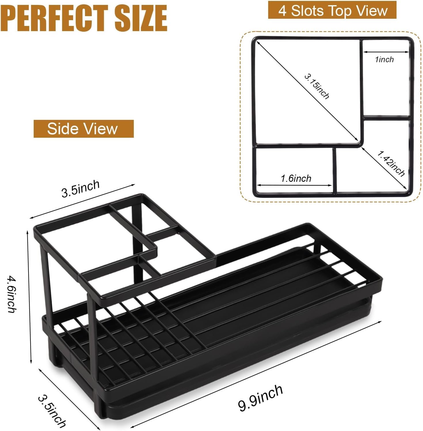 Easy to clean: This bathroom organizer is hollowed out on all sides for easy ventilation. The removable drip tray makes cleaning easier, you just need to pour out the water inside the draining tray and rinse it with a damp cloth or water. Say goodbye to those water stains on your counters!