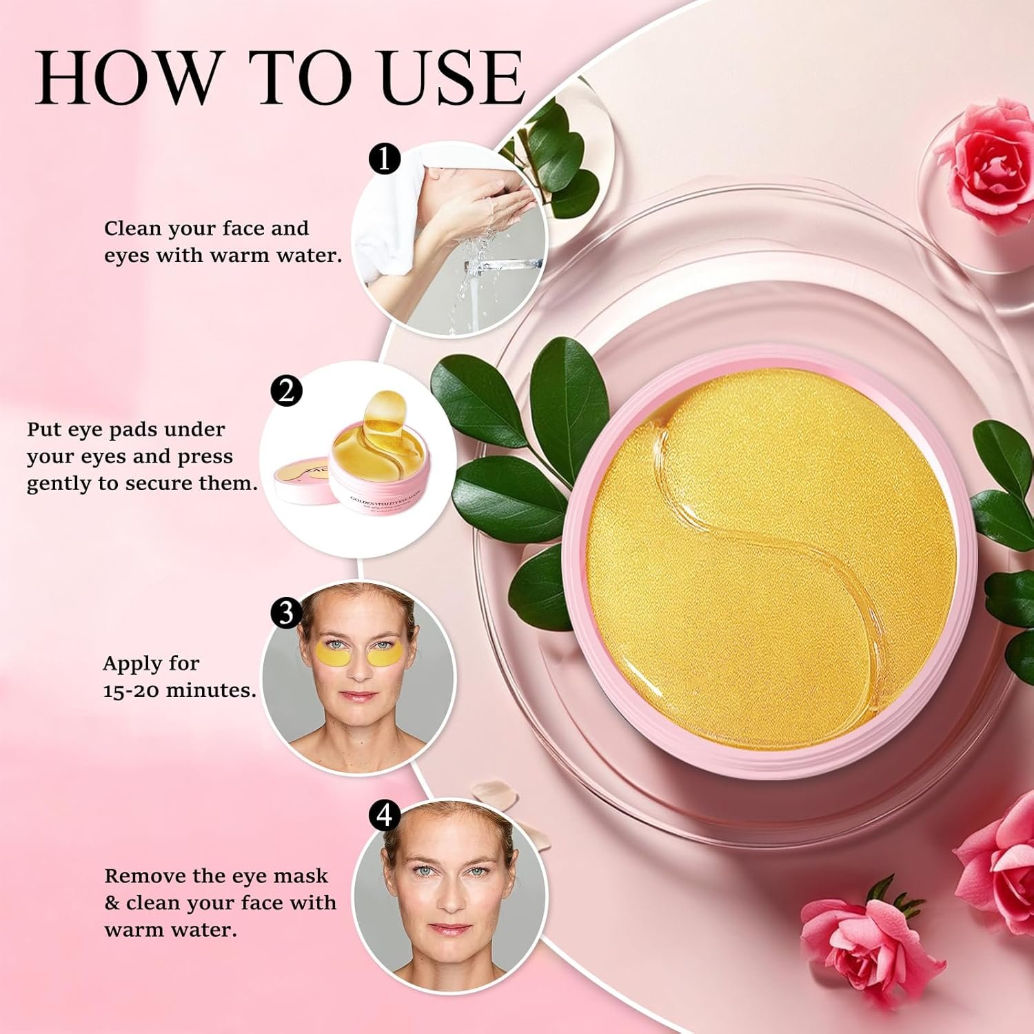 GENEROUS QUANTITY: Contains 60 under eye patches providing 30 applications, offering long-lasting value for your daily skincare routine