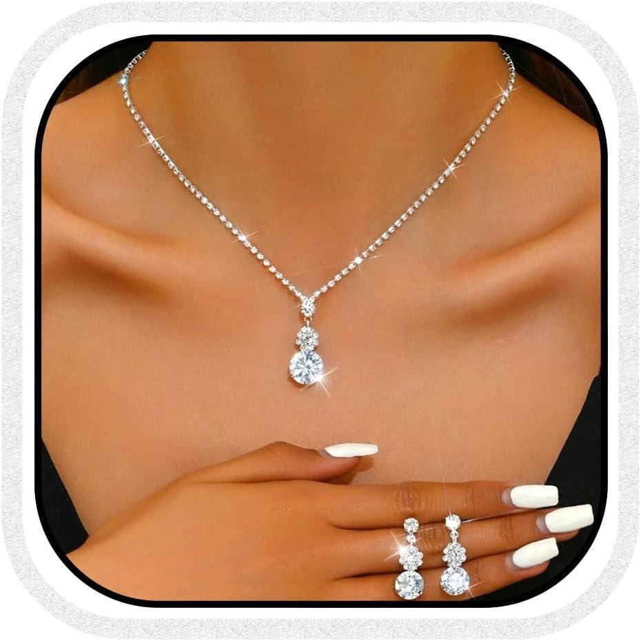 Unicra Silver Necklace Earrings Sets Rhinestone Bridal Wedding Jewelry Set Formal Prom Costume Jewelry Sets for Women and Brides