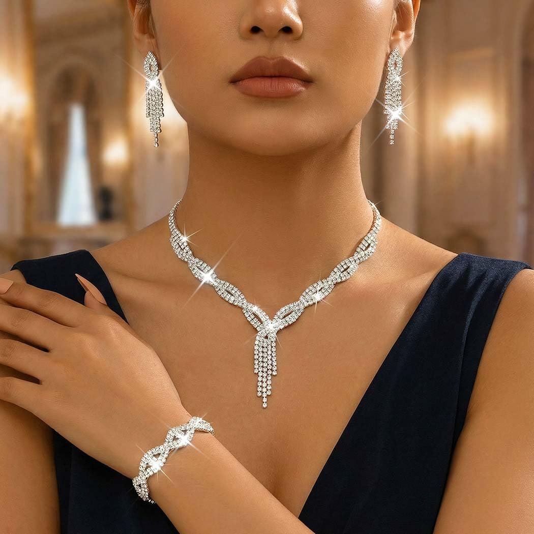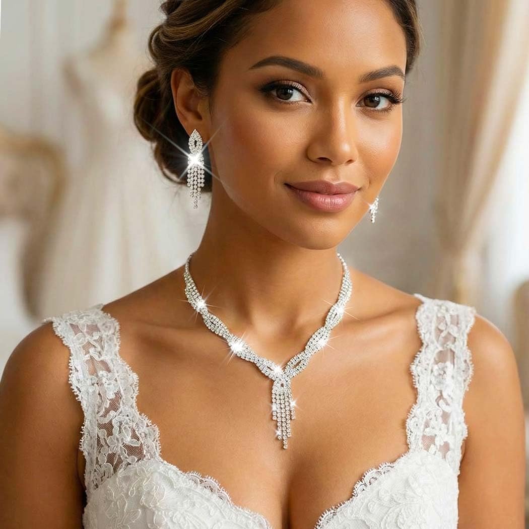 Rhinestone necklaces earrings fits perfectly for wedding, engagements, proms, homecoming and other special occassions. Wedding necklace will add more charm for your outfit and make you look elegant. With it you will become the focus of crowd and get lots of compliments.