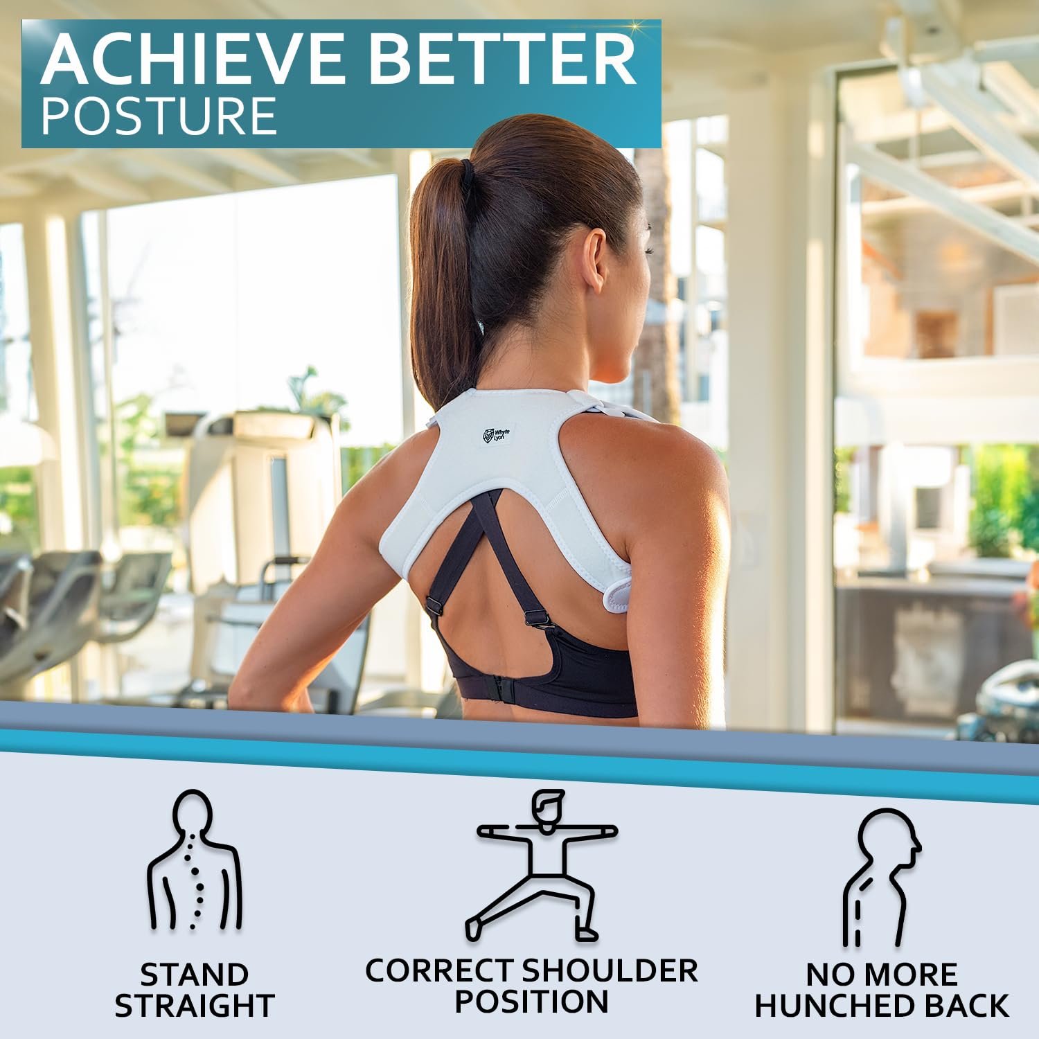 Upper Back Posture and Neck Hump Corrector – for Women and Men – Support Brace and Straightener for Pain Relief – Rounded Shoulder and Buffalo Hunchback Alignment – Discreet Under Clothes – White