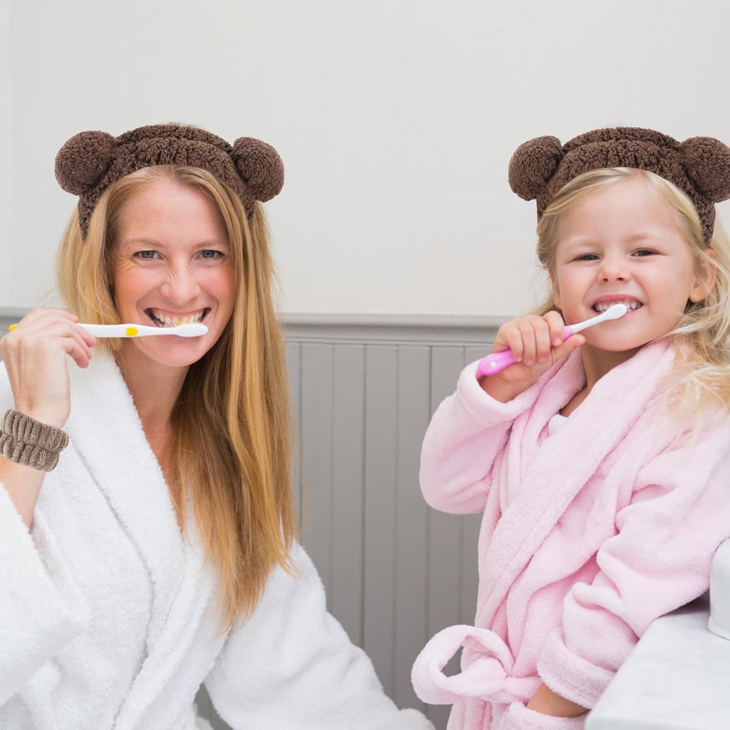 VELSCRUN Spa Headband, Makeup Face Wash Skincare Headbands, 5 Pcs Sponge Get Ready Bear Ears Hairband Facial Wristband Hair Clip Set, Stuff for Teen Girls Women Trendy Hair Accessories Dark Brown
