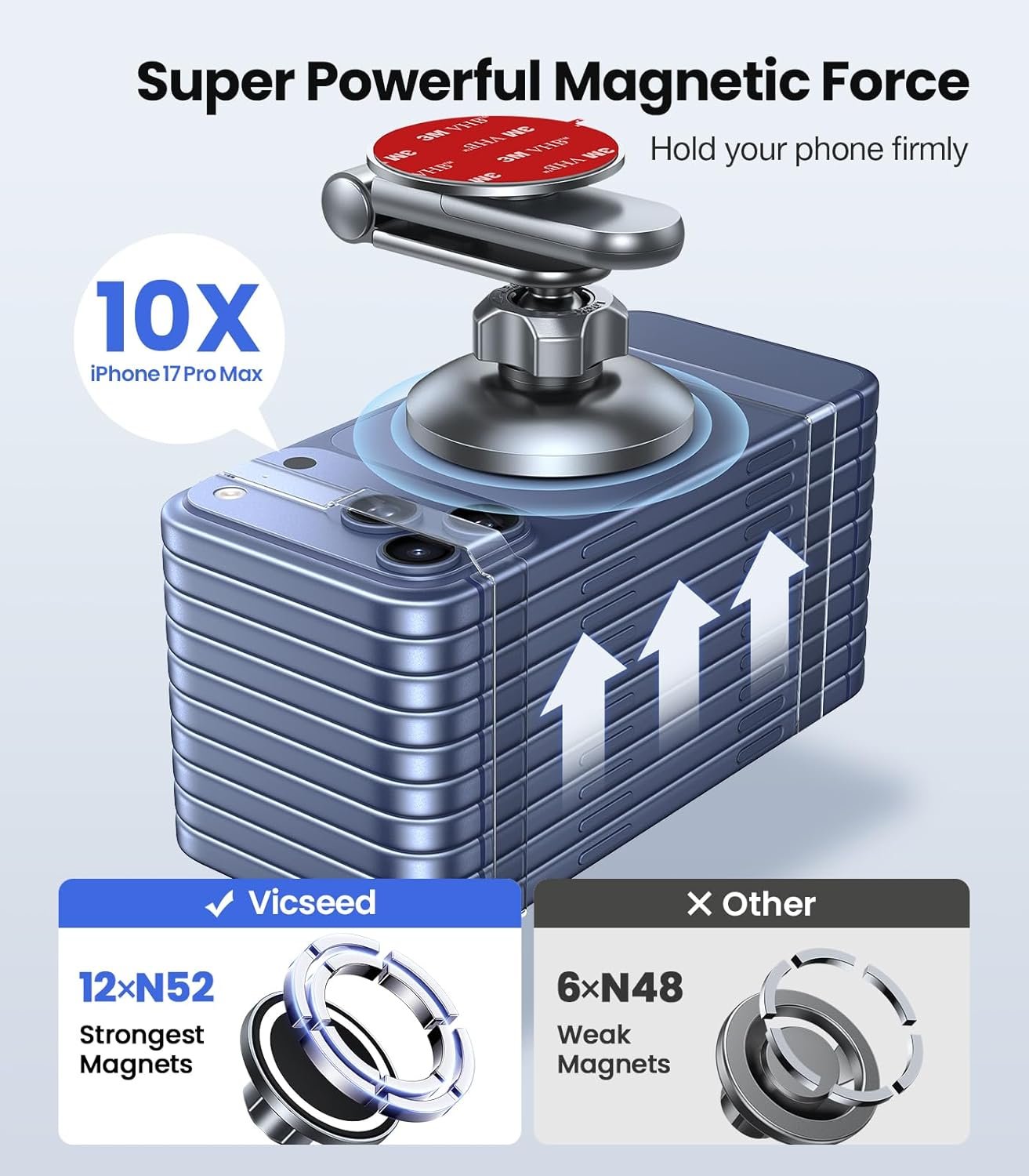 [Newest Design for Magsafe] Most stylish car phone holder mount in 2025 is specially designed for iPhone 17/16/15/14/13/12 Pro Max Air Plus & official MagSafe cases & other magnet cases, which can attach these phones directly without sticking metal plates. The iphone car mount will automatically align and snaps to your iPhone, snap and go, saving your precious time