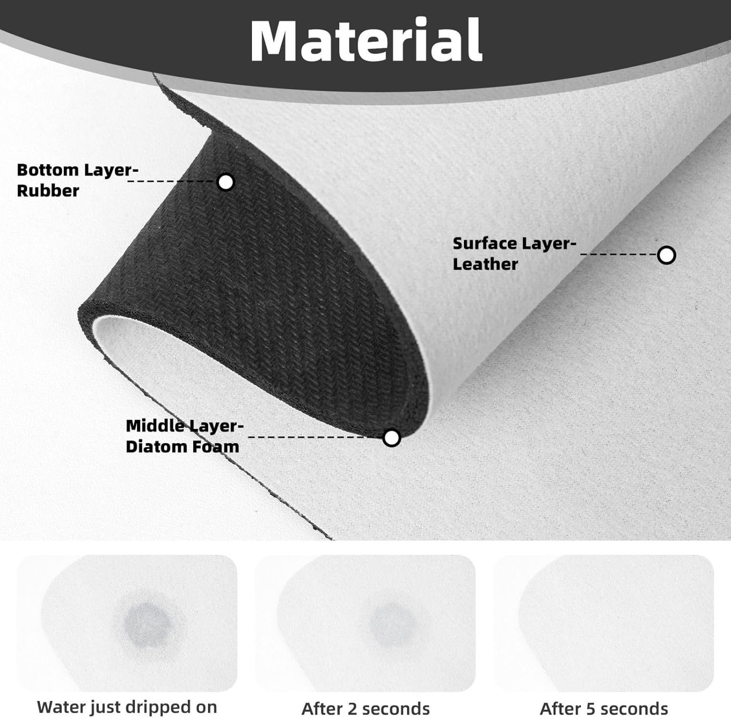 Super absorbent:The faucet absorbent mat is made of diatom mud, which can effectively absorb water and prevent water from leaking onto your worktops, keeping them dry and free from water damage, ensuring long-lasting durability