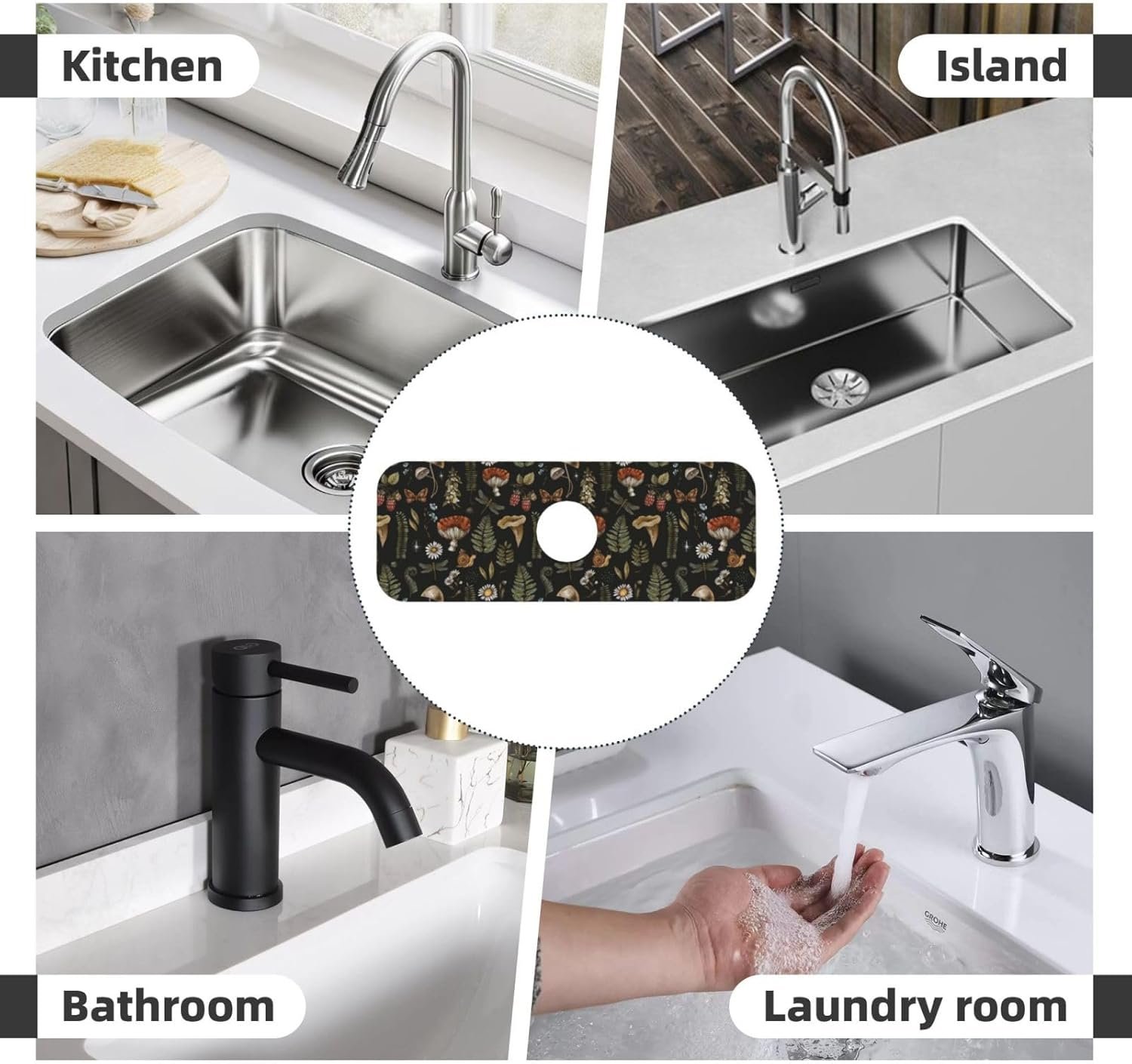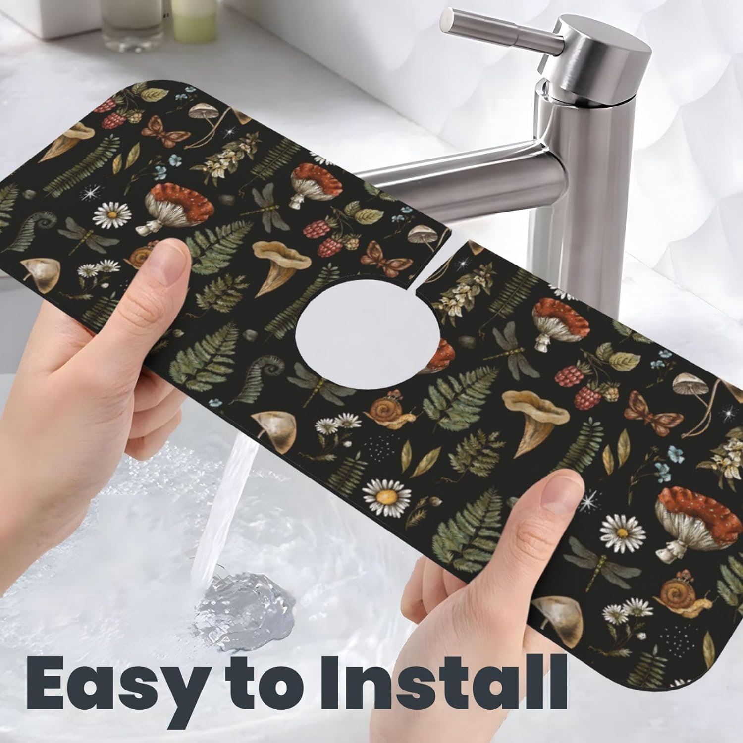 Widely Application: This Kitchen Sink Splash Guard Faucet Mat can also as a faucet mat for bathroom sink, organizing small items like toothbrush cup, dish soap, liquid hand soap. It fits most of sink faucets in kitchen, bathroom, camper, RV, laundry room