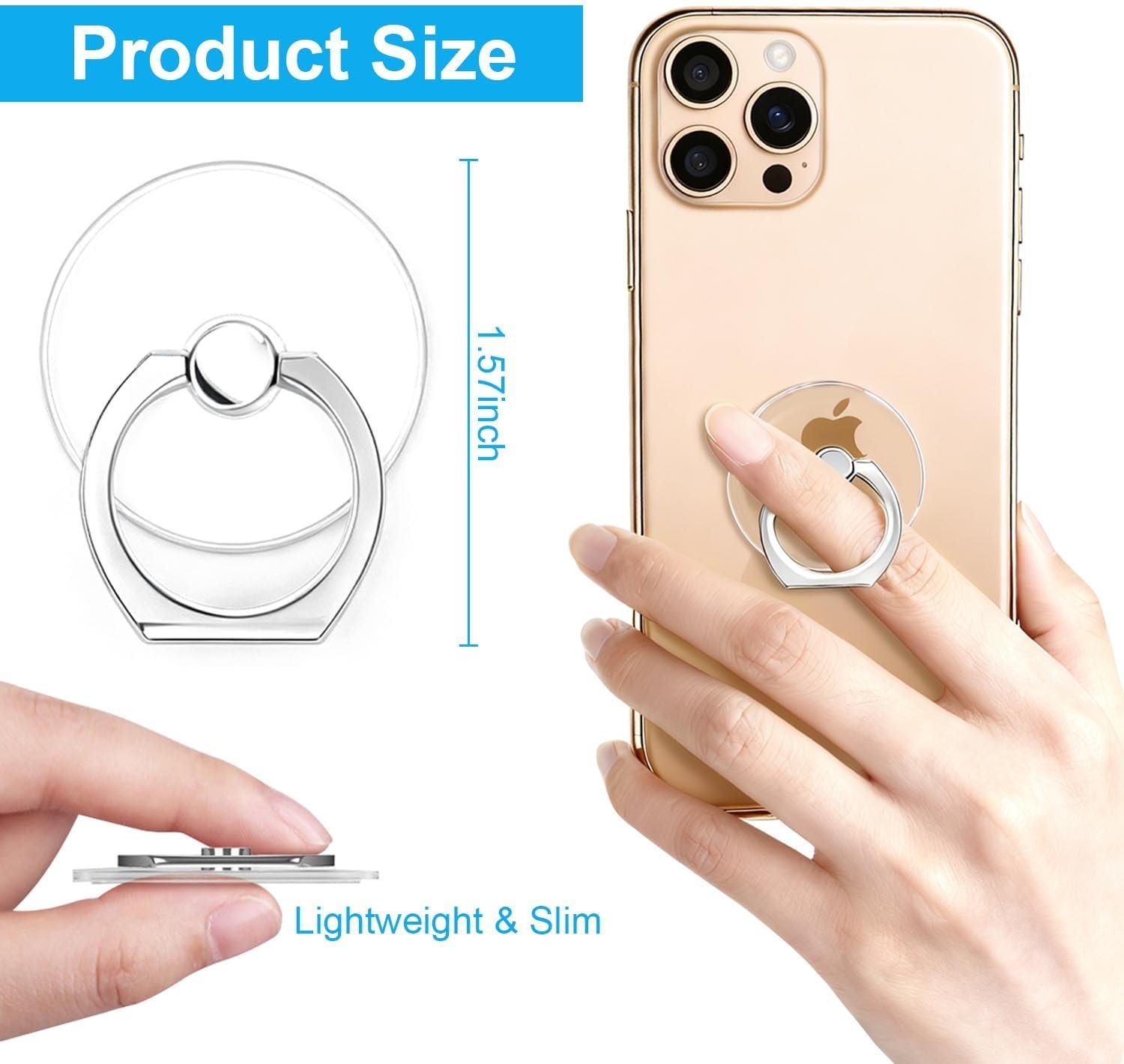 【Transparent Design】 This clear mobile phone ring holder is made of transparent Acrylic, perfect fit for any cell phone with or without case cover. Our clear phone ring stand keeps your phone case original feature design without affecting the exterior.