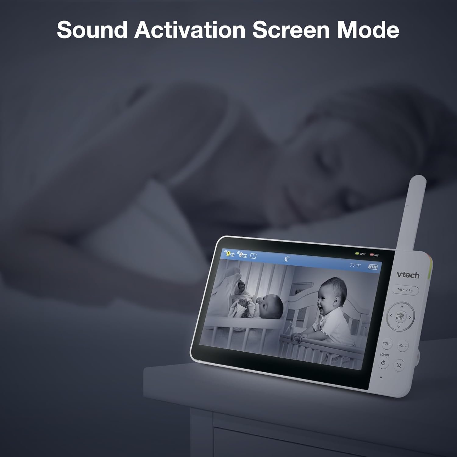 [FREE APP WITH LIVE CAMERA VIEW] PEACE OF MIND ANYWHERE Stay connected from anywhere with our free MyVTech Baby Plus app. Watch live video, listen in, talk back, and share access with family. Multitask effortlessly using Picture‑in‑Picture mode—keep an eye on your baby while using other apps.
