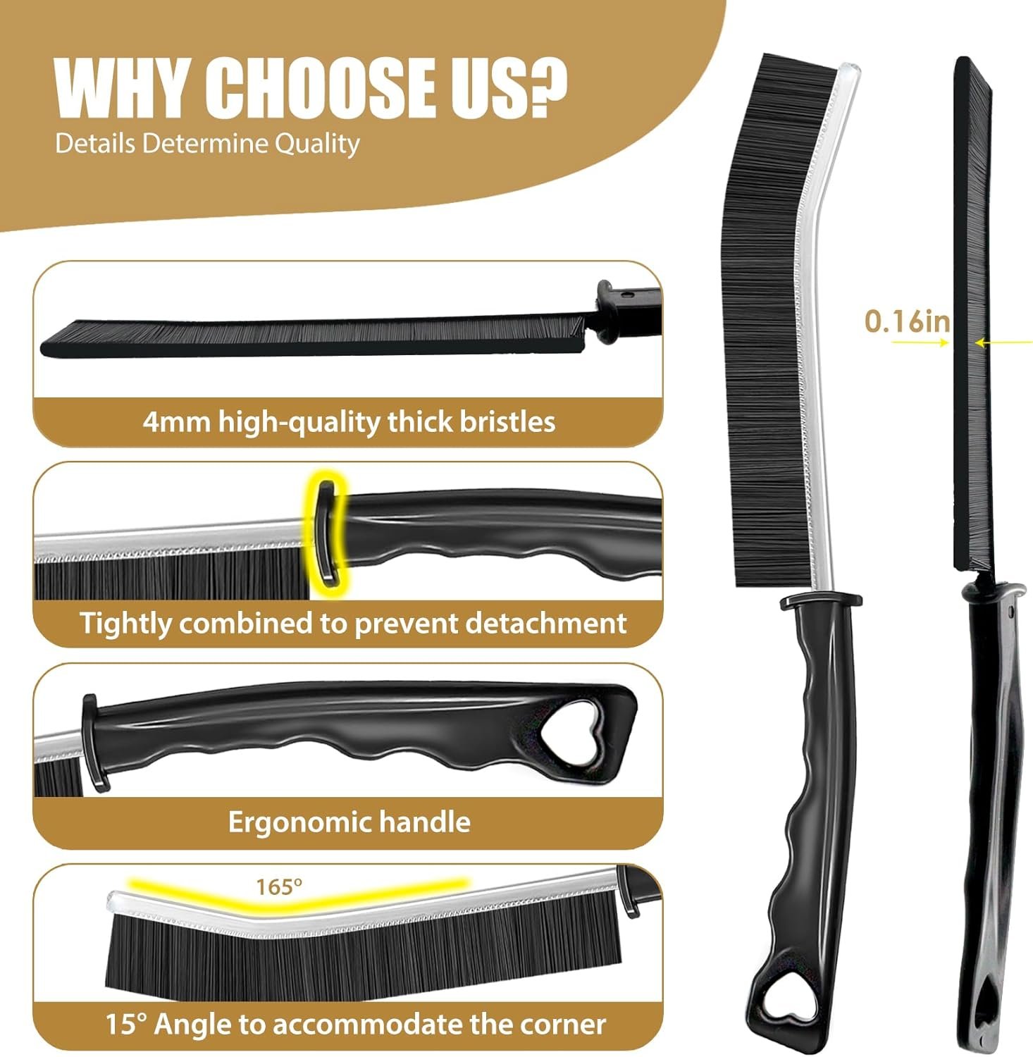 【Widely Applicable】The hard bristled crevice brush is suitable for cleaning small spaces such as faucets, sinks, stoves, toilet seat hinges, bathroom bathtubs, shower racks, sinks, window crevices, sliding door tracks, tile countertop grouting lines, fans, air conditioning vents, refrigerator gaskets, washing machines, furniture, wardrobes, bird feeders, cars, etc. Multiple sets can provide different brushes for different rooms such as kitchens, bathrooms, and living rooms to avoid mixing.